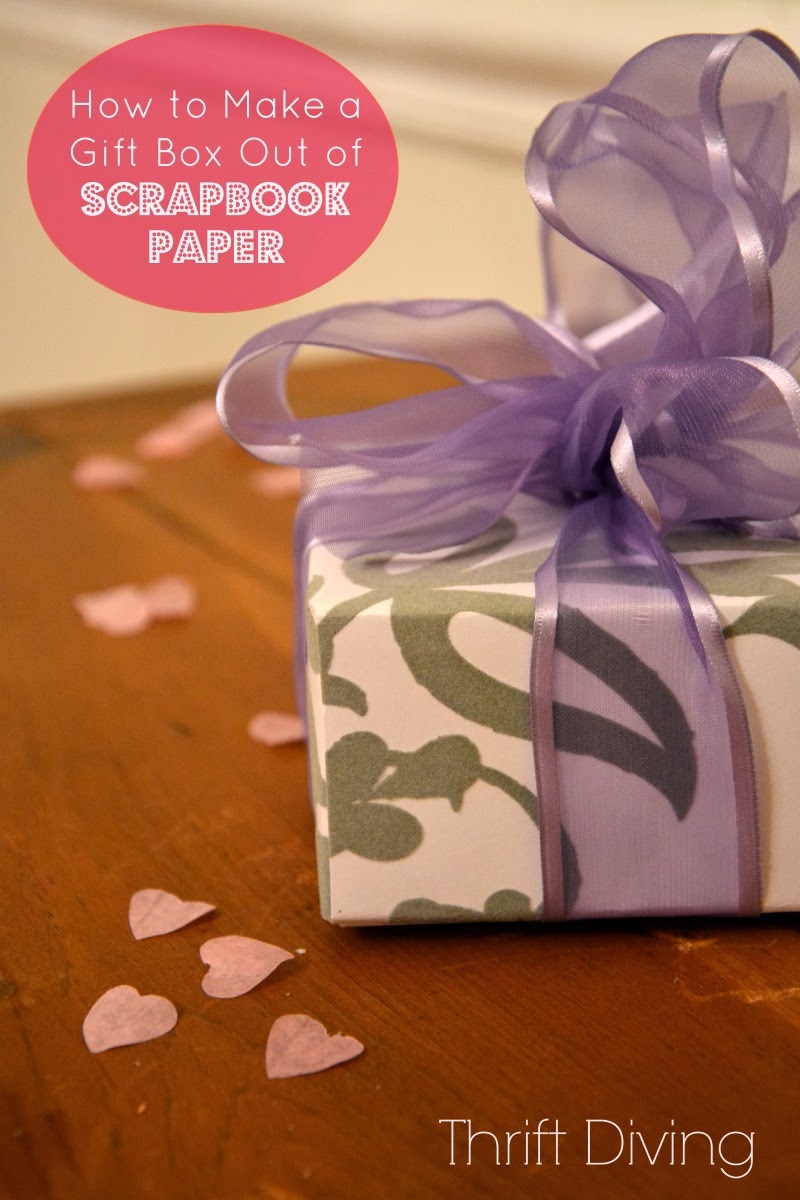 Now on to our celebrity!  Serena from Thrift Diving has an awesome project that you can make in five minutes.  Serena was on TV y’all – showing people how to make gift boxes out of scrapbook paper.  Check out Serena’s video to see her in action!