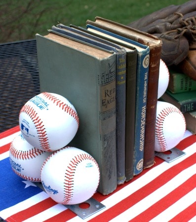 Use baseballs to make bookends. I used new balls because I didn’t have any old ones, but this is a great way to repurpose balls that a child or grandchild is no longer using.