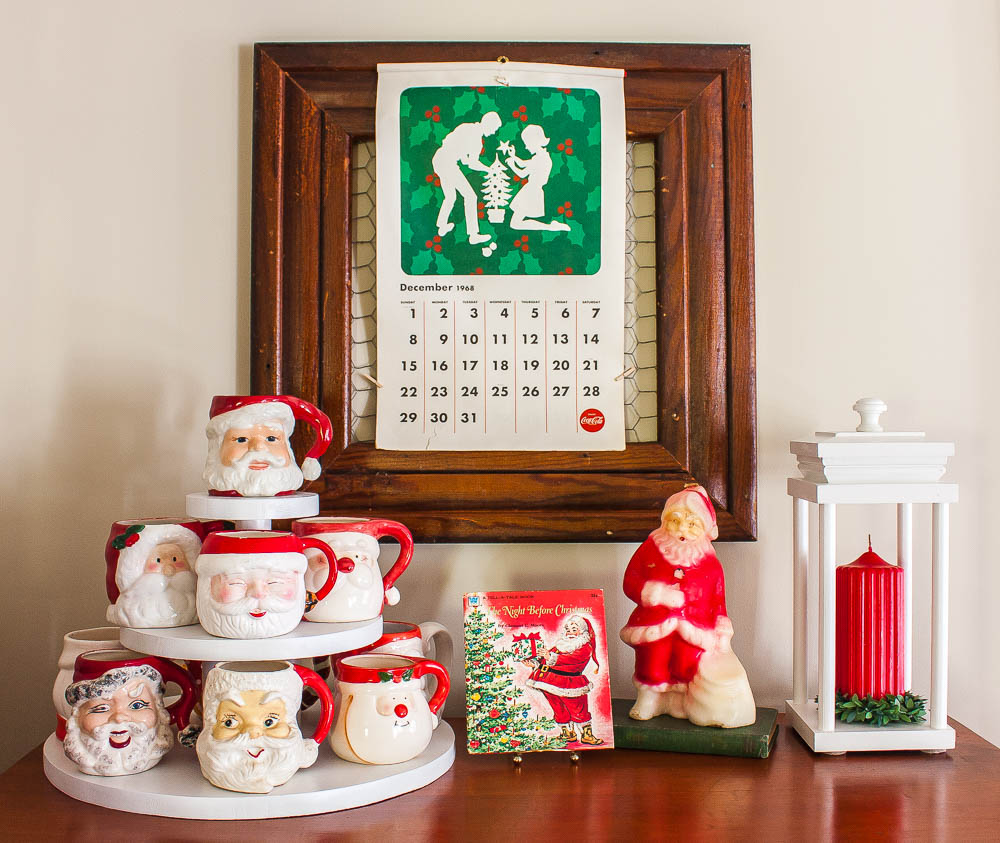 It looks so pretty and festive, I love all the vintage! The collection of Santa mugs is my favorite!