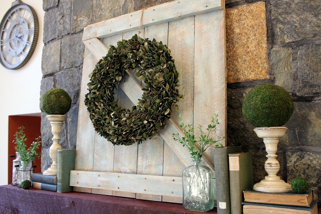 Life on Kaydeross Creek shared how to make a DIY Mini Barn Door. This is perfect to use on a mantel in any season.