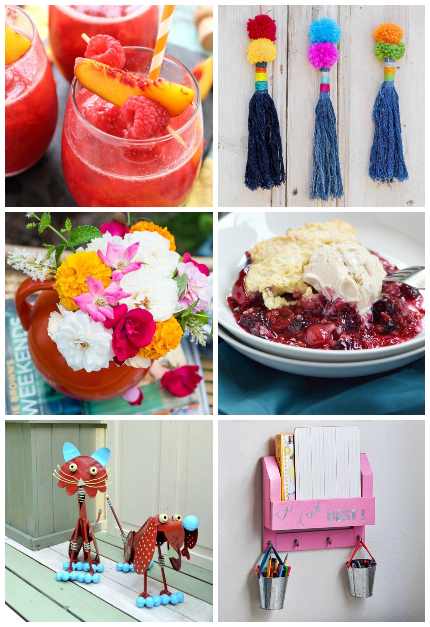 Best of the Weekend Features for August 3, 2018 I Peach Bellini I DIY Upcycled Denim Tassels I Easy Summer Flower Arrangement I Very Berry Cobbler Recipe I Whimsical Garden Decor I DIY Desk Organizer