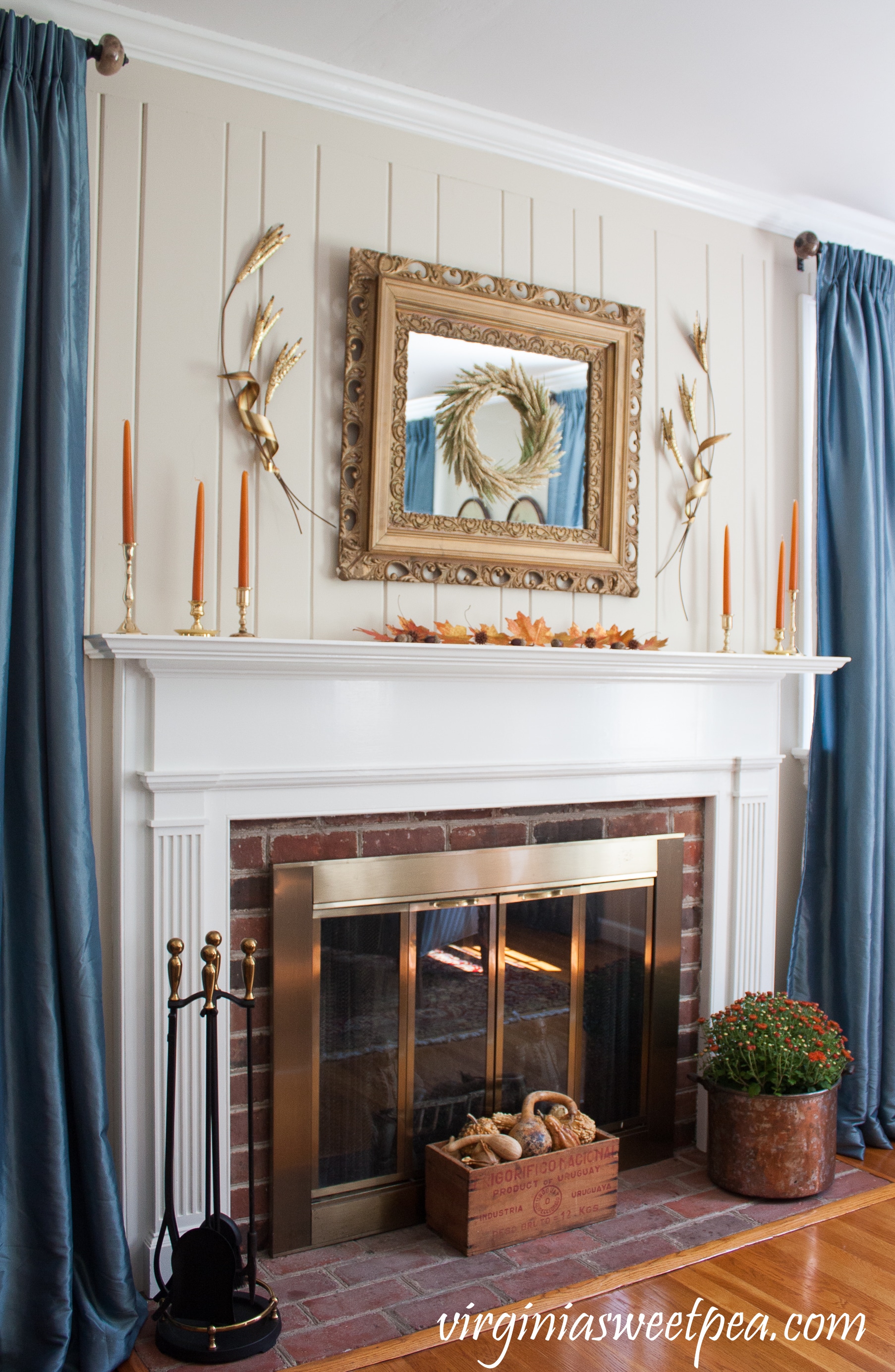 Traditional Fall Mantel with Vintage Charm - Fall Ideas Tour - Get ideas for fall mantels, tablescapes, DIY projects, recipes and porches.