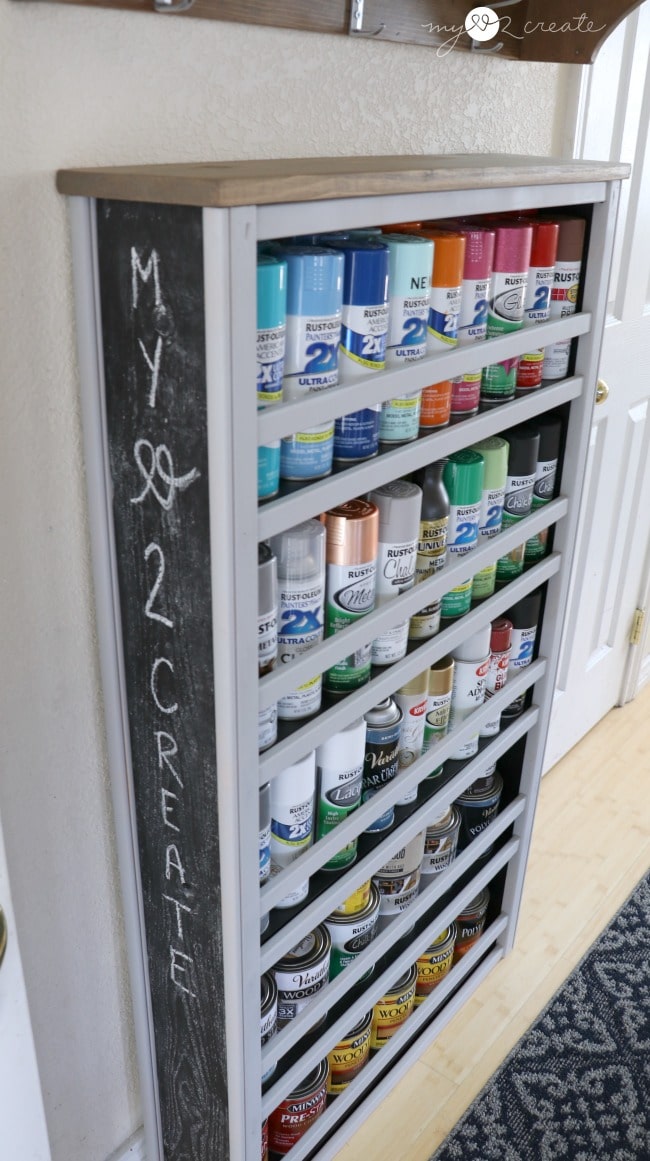 My Love to Create was given an old crib and she repurposed it into a paint shelf. Isn’t that a clever idea?