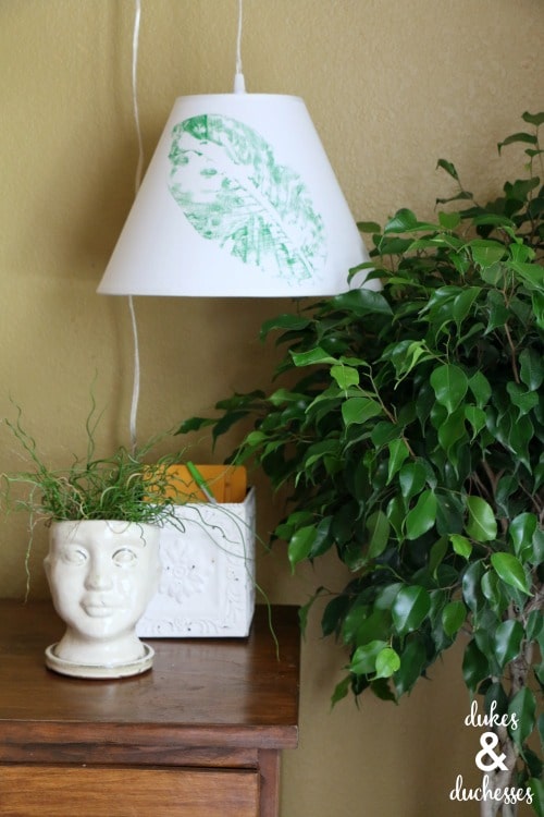 Dukes and Duchesses shared how to make a Leaf Stamped Botanical Lamp Shade.