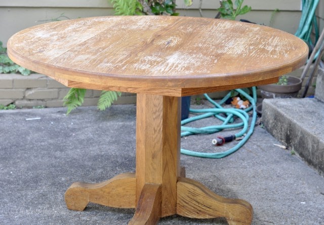 Lamberts Lately shared how she refinished and painted her oak kitchen table to give it a farmhouse look.