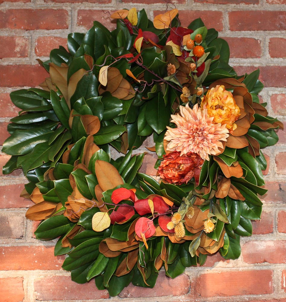 DIY Magnolia Wreath Styled for Fall - Learn how to make a wreath like this one for your home. virginiasweetpea.com
