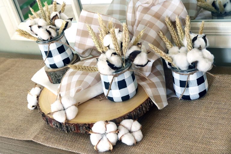 Curly Crafty Mom shared how she used Oui yogurt jars to created Plaid Jars for Fall.