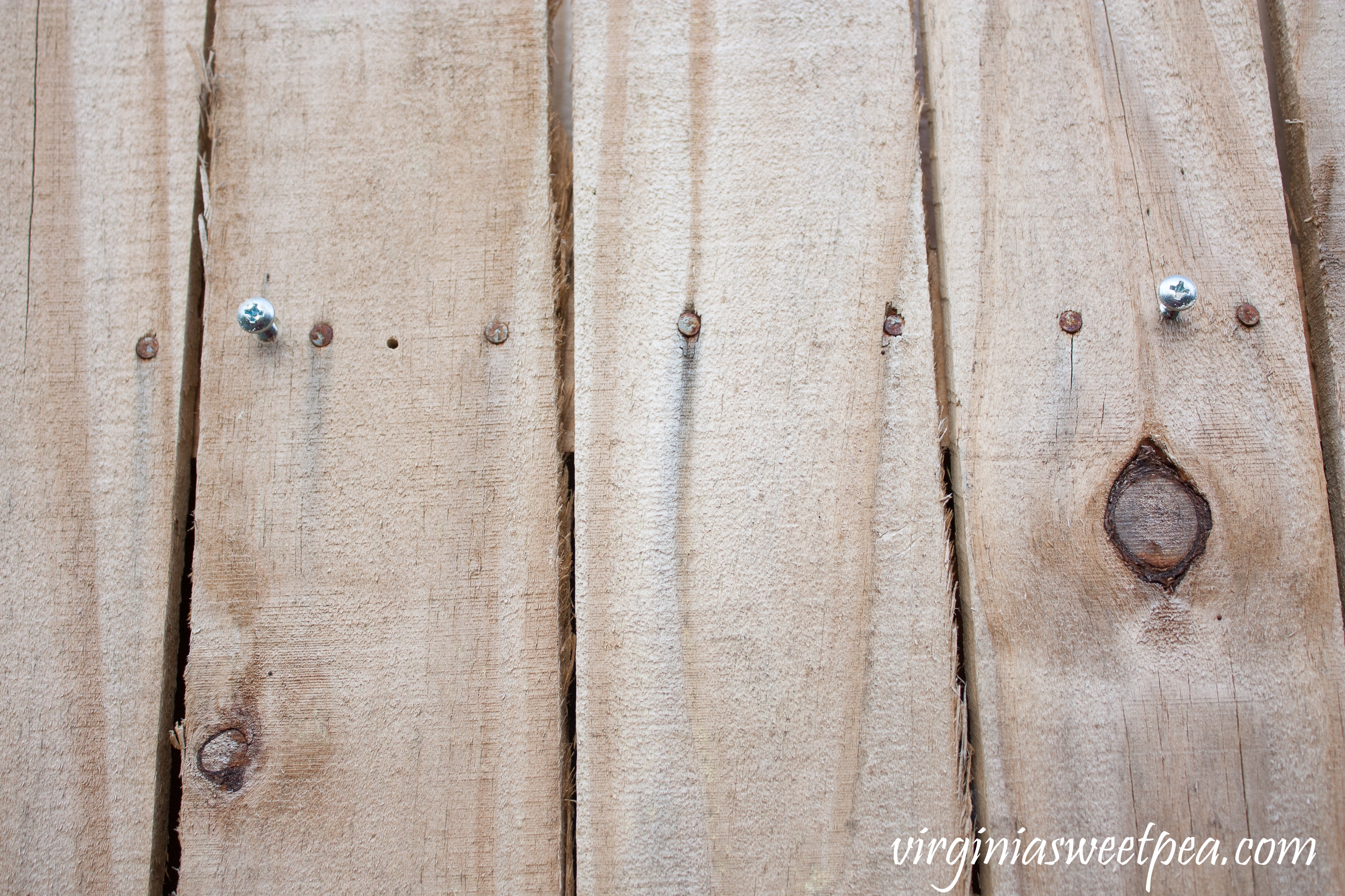 To attach the message board to the wall, measure the distance between the two keyholes on the back of the message board and then screw two screws into the wall where you want the message board to hang. (For demonstration purposes, these screws were inserted into the folding wall that I made to use for selling at vintage markets.