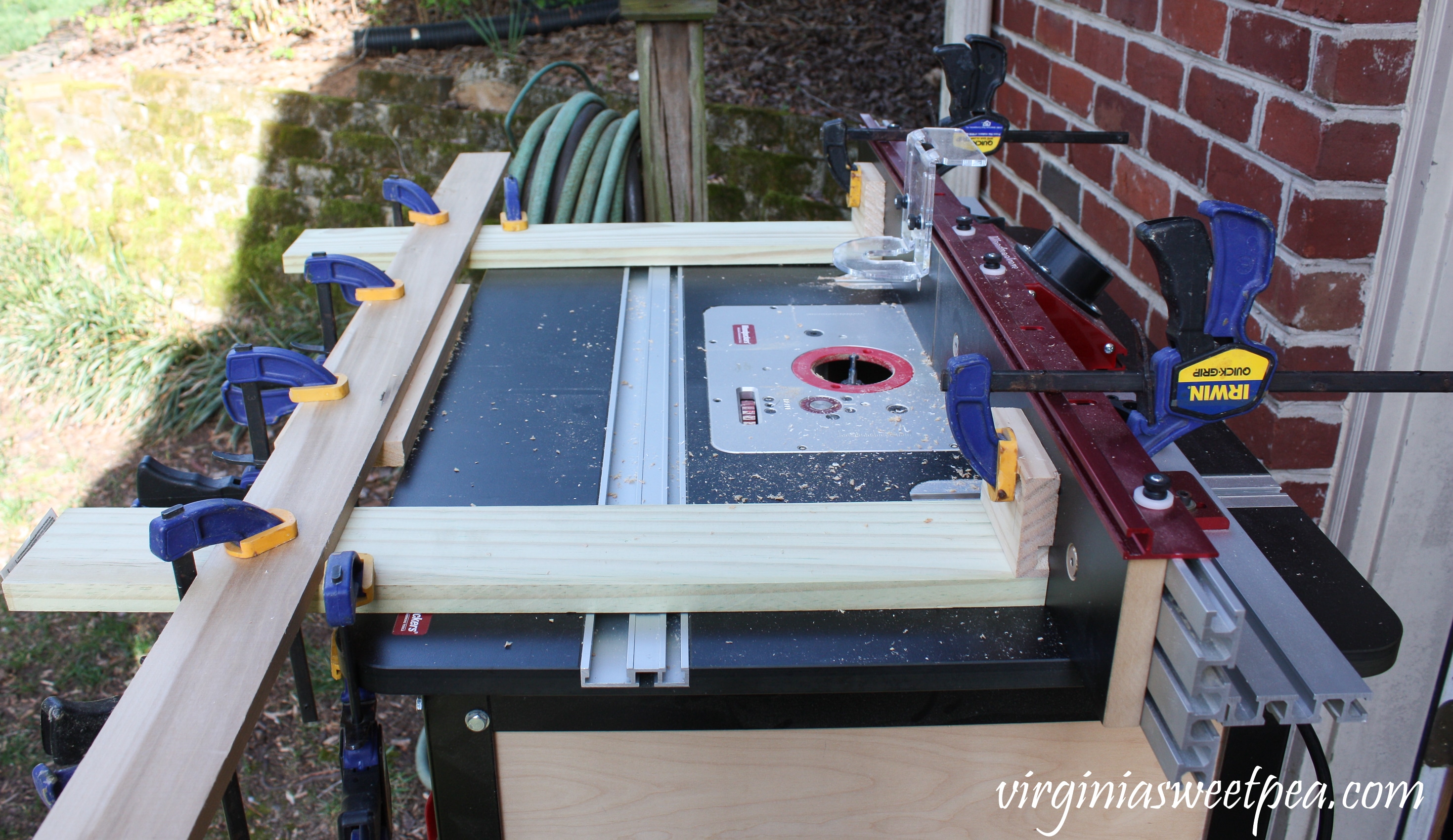 My husband set up a jig on his router table to get the keyholes in the same spot on both doors. I have a stack of these doors and he added keyholes to all of them, so when I use them for future projects, that step will be complete.