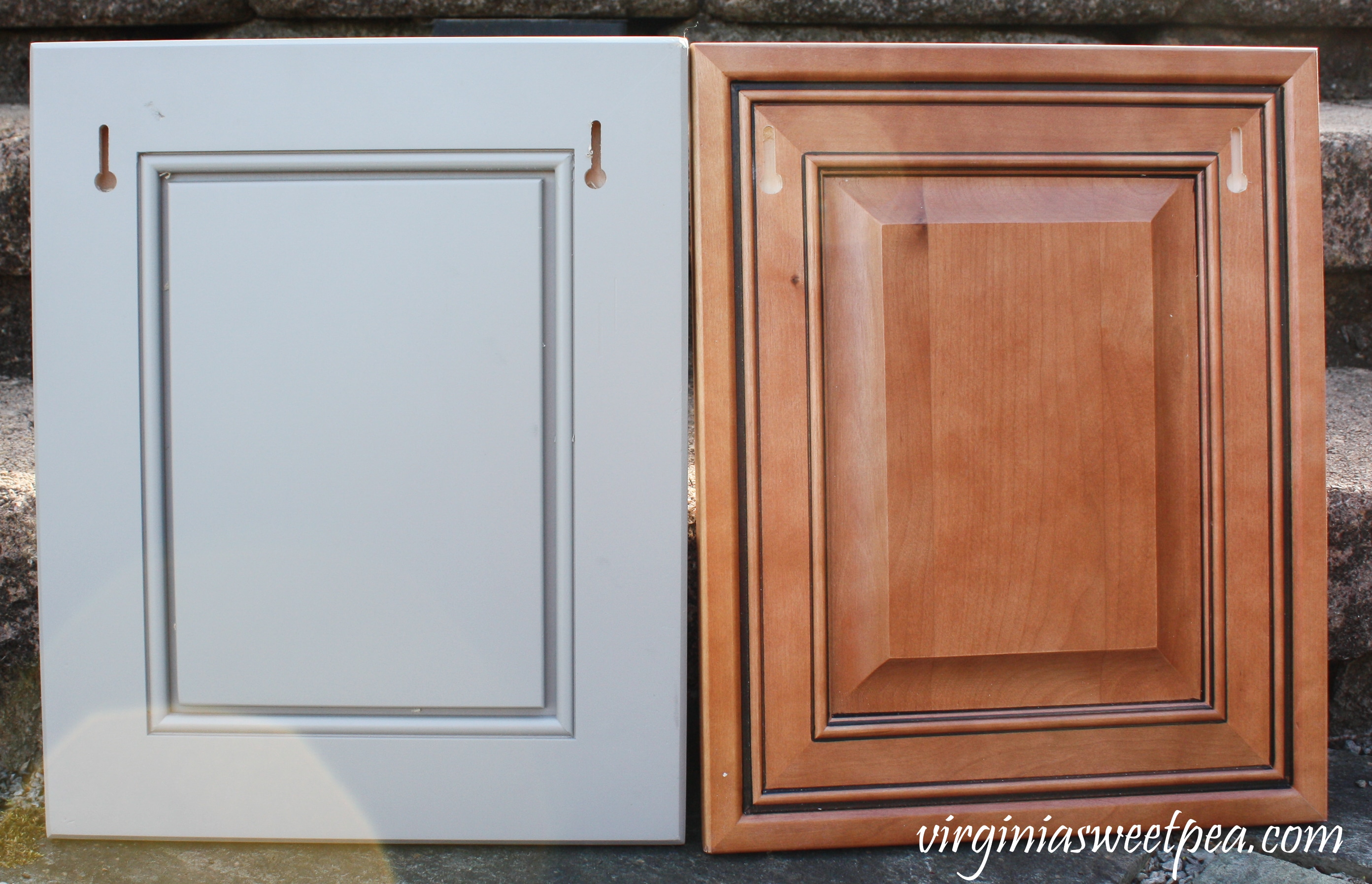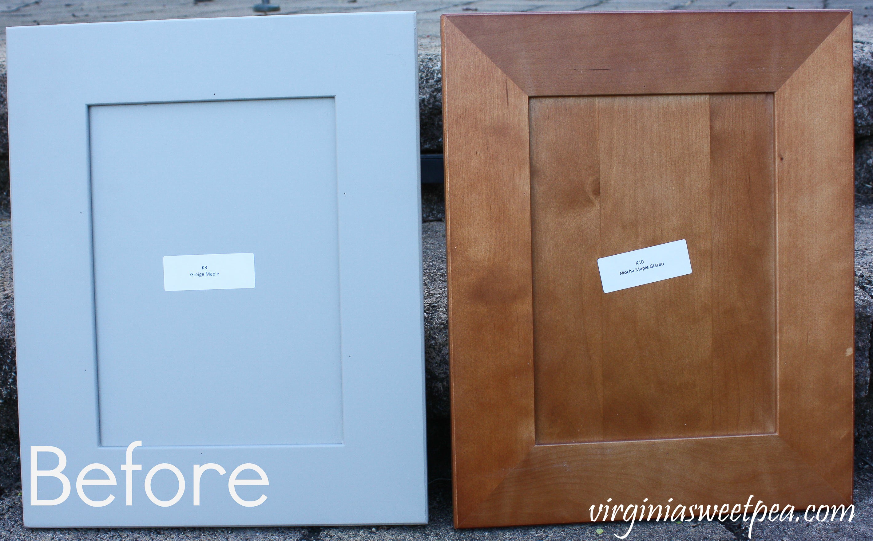 My mom’s friend passed along a stack of cabinet door samples to me a few years ago knowing that I would enjoy using them for an upcycle project. From the stack that he gave me, for this project I selected doors in Greige Maple and a Mocha Maple Glazed. I used the back side of the doors because the shaker style was perfect for this project.