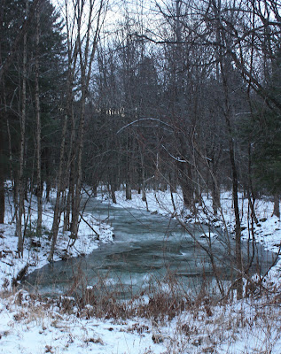 This pretty frozen creek is somewhere near Sugarbush Farm.  They make cheese there and also process maple syrup.