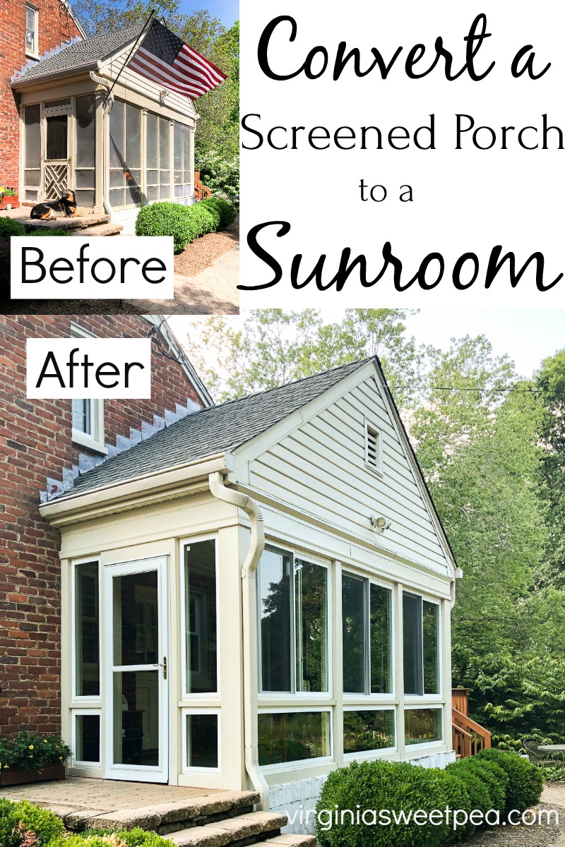 Converting a Screened Porch to a Sunroom. Before and After pictures plus progress pictures.