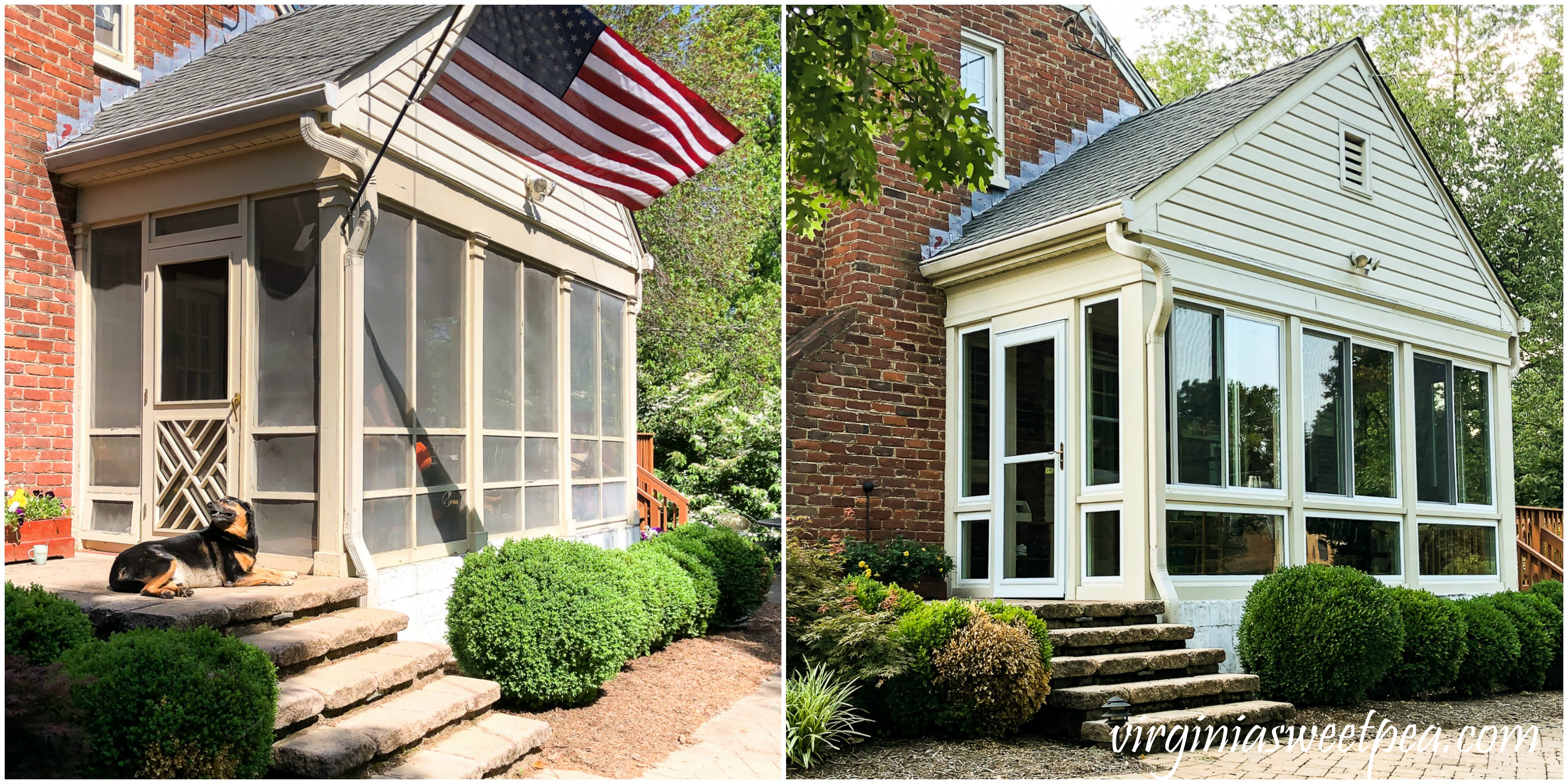 I’ve mentioned several times in the past few months that we had plans to convert our screened porch into a sunroom.  We finally bit the bullet and not only had our screened porch converted to a sunroom but also had new windows installed in our 1950’s home.