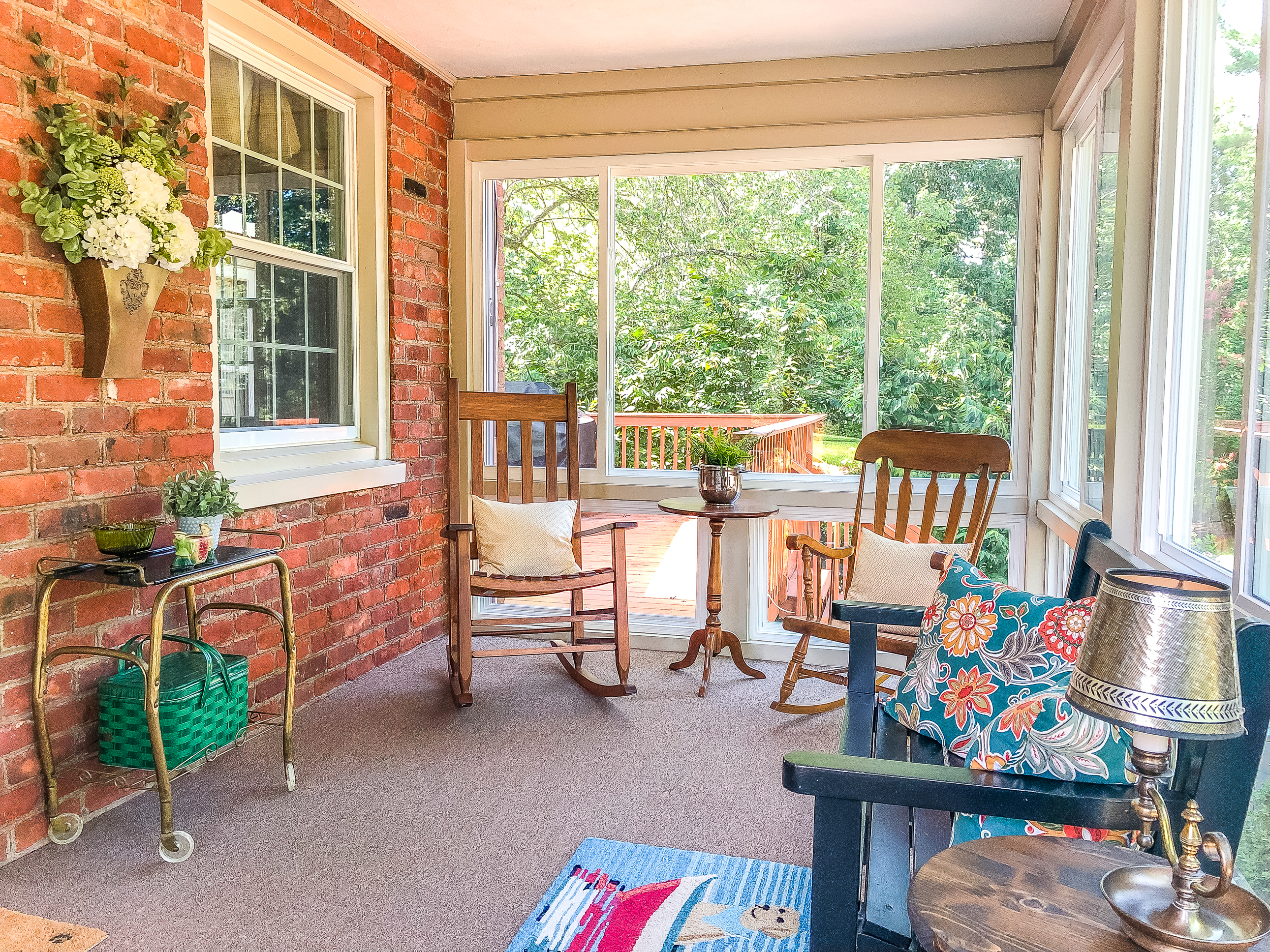 This is a long post, so grab a cup of coffee or a refreshing cool beverage to enjoy as I show you the process of converting our screened porch to a sunroom, the interior of the updated sunroom, our replacement windows, and projects that we need to tackle now that this one is complete.