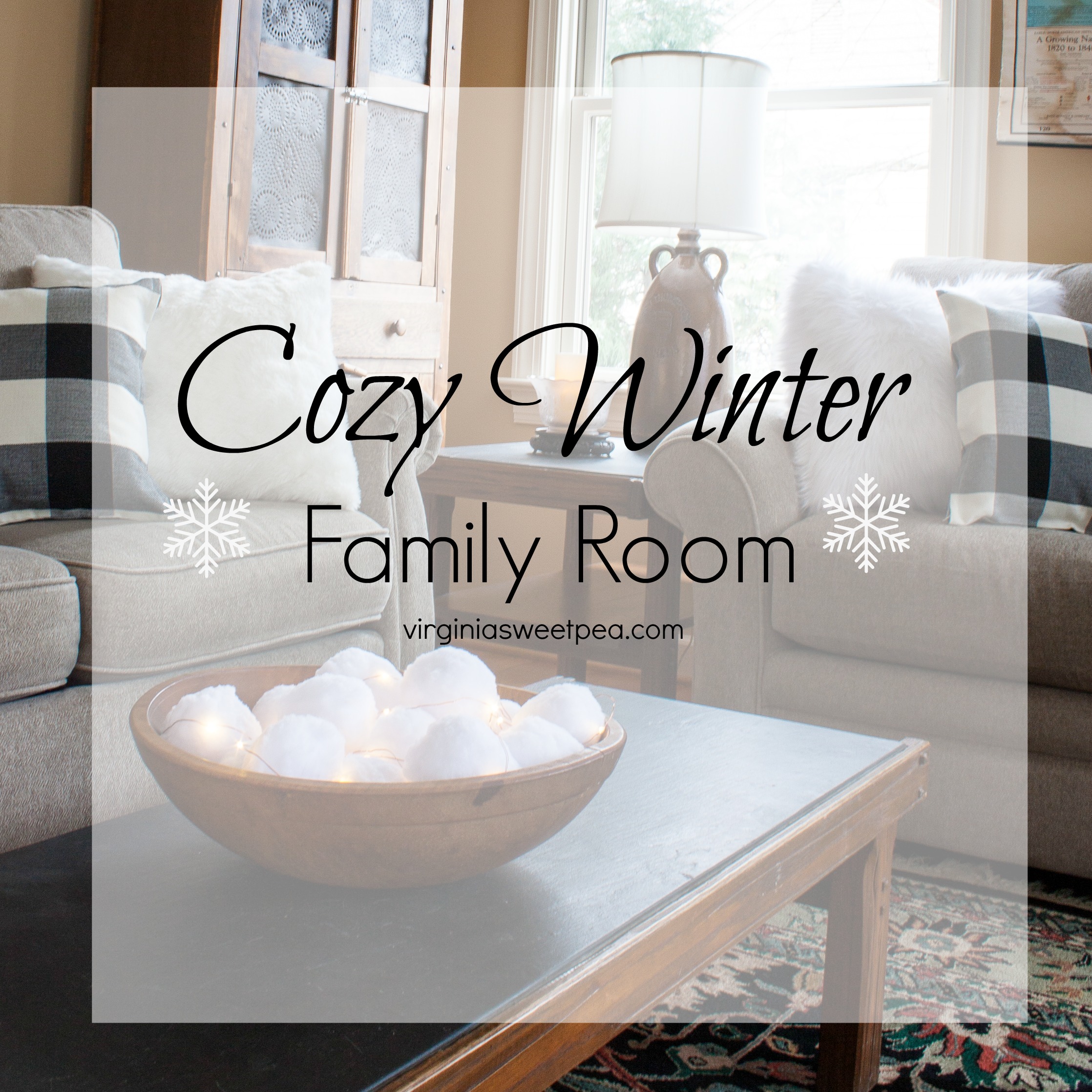 After the Christmas decorations were put away in our family room, I wanted to keep the cozy feeling that the tree and other Christmas decor evokes. My goal was to create a Cozy Winter Family Room for us to enjoy on the cold and dark nights of winter.