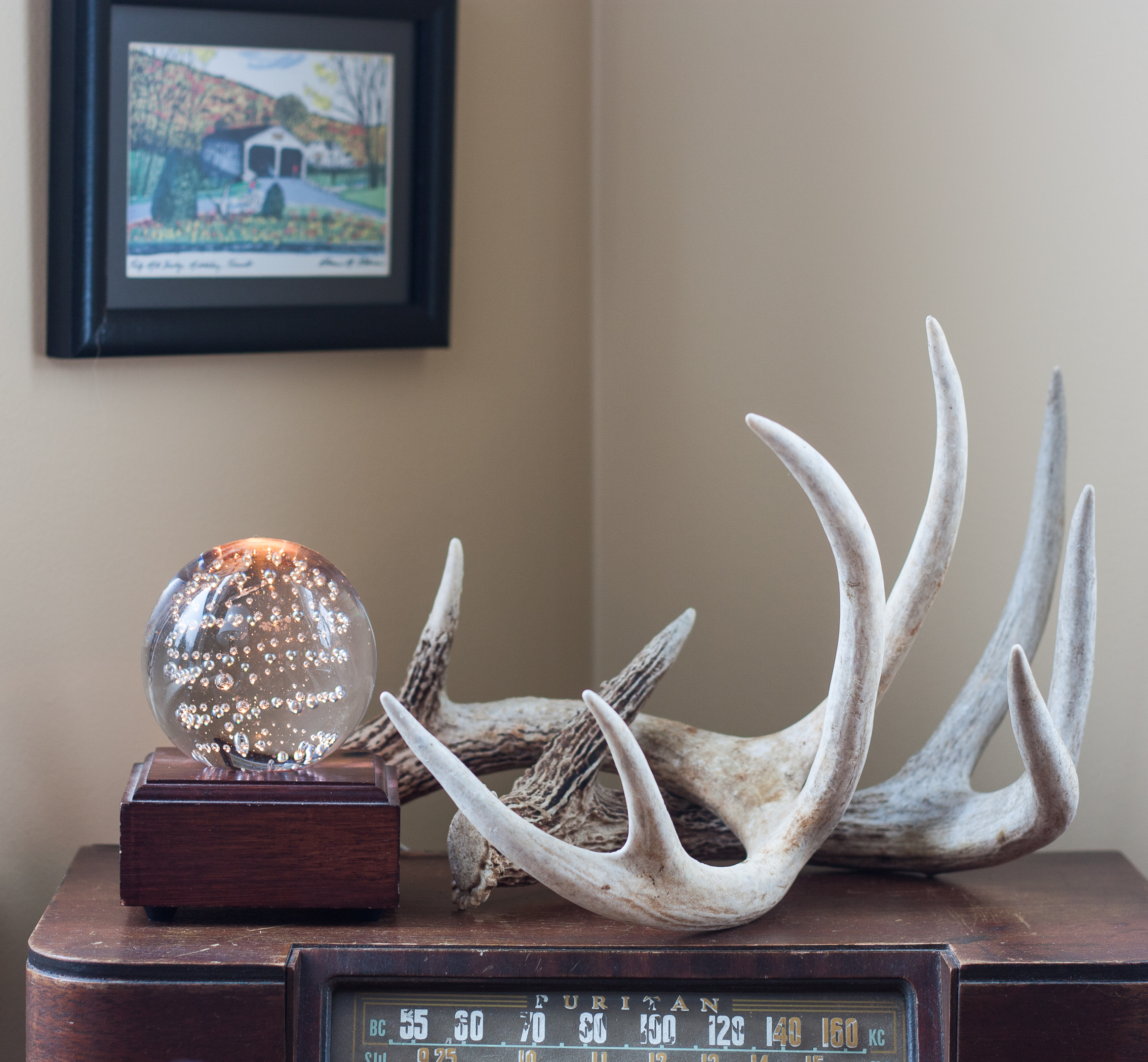 I enjoyed the tour. My favorite thing though is how you used that old sconce shade. Very clever. Your wooden bowl is similar to one I inherited. Is yours marked “Munising” on the bottom?