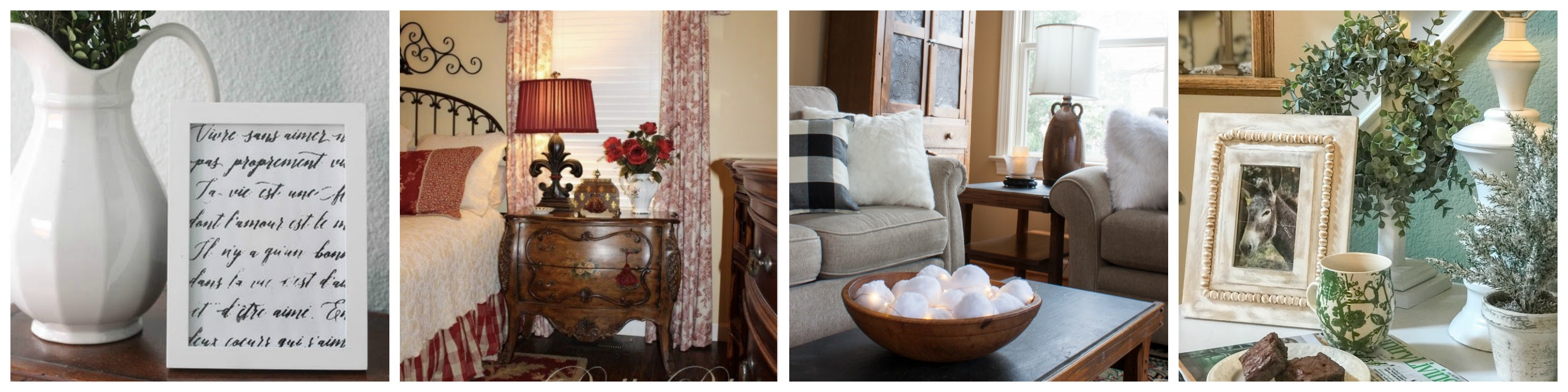 Each photo on your tour held a treasure! I love, love all the vintage touches. I think your idea to use the sconce cover as a candle holder is beautiful! I love the snowballs in your Grandma’s bowl and all the clocks. All so wonderful!