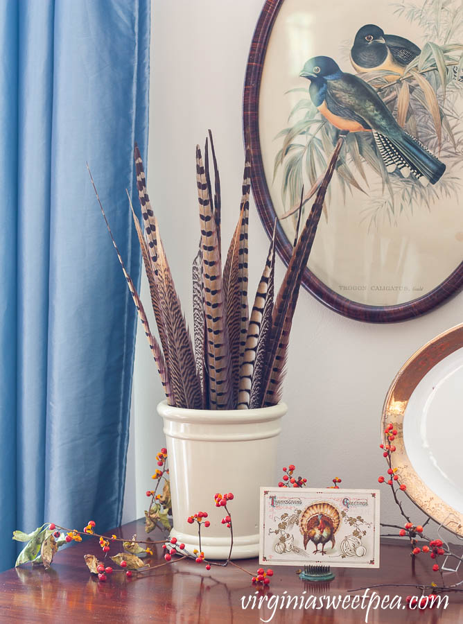 Your home always looks so beautiful decorated for the seasons, Paula. I love all of the vintage touches. Especially the feathers. So fun!