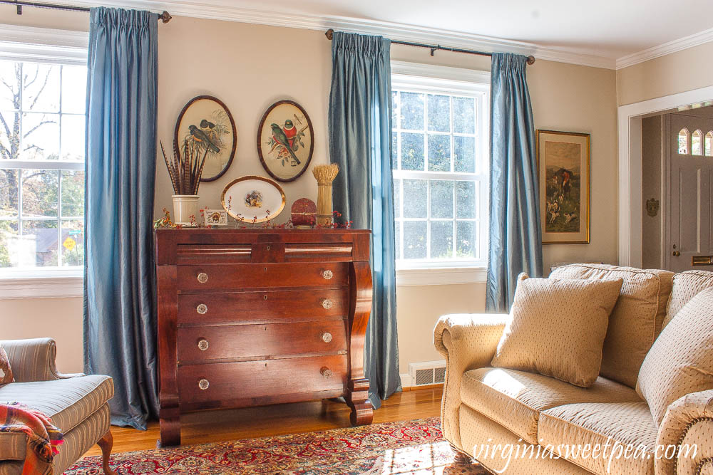 I’m always in awe of the heirlooms you have. What treasures! Your turkey platters are beautiful, and your living room looks lovely for Thanksgiving.
