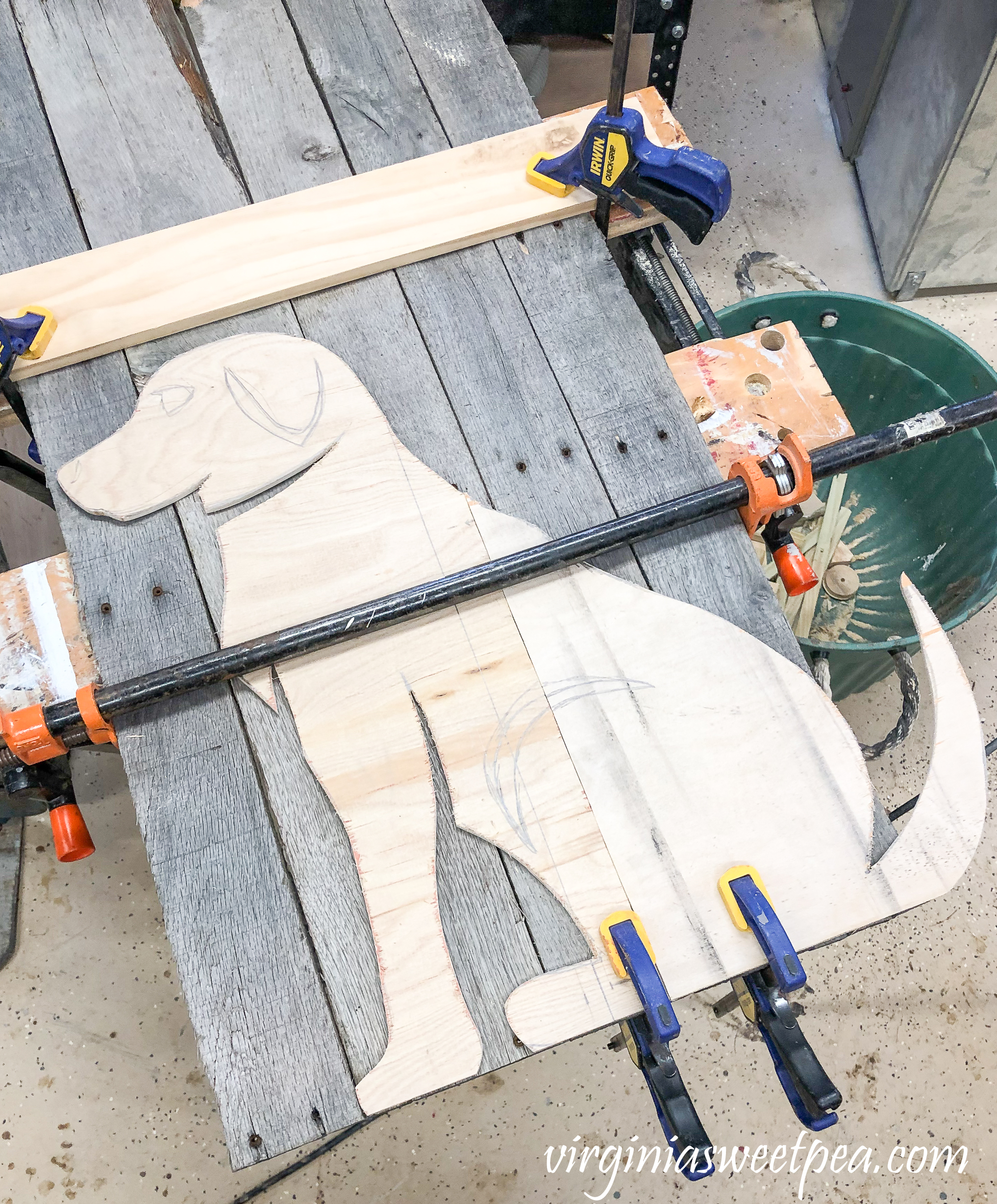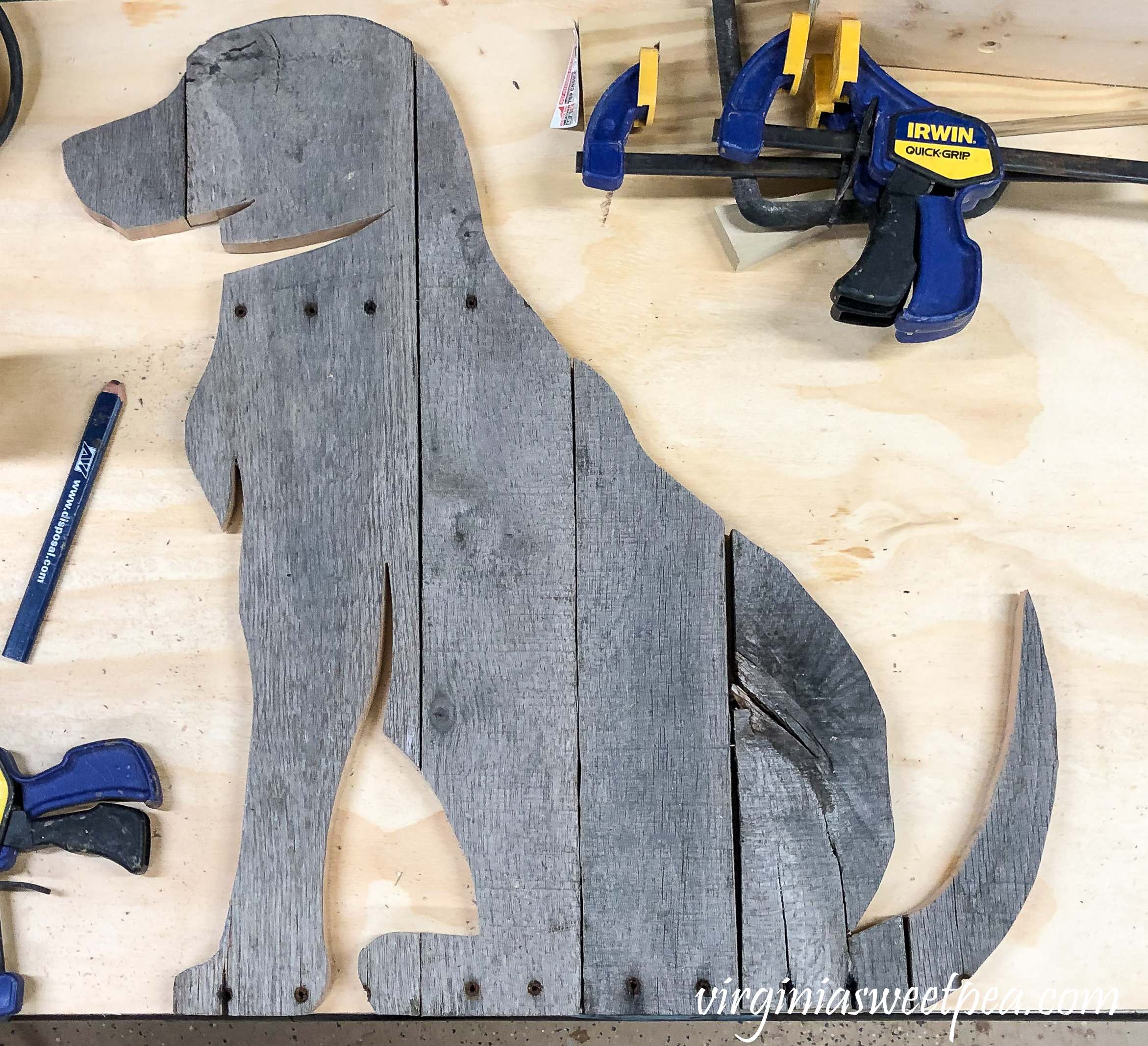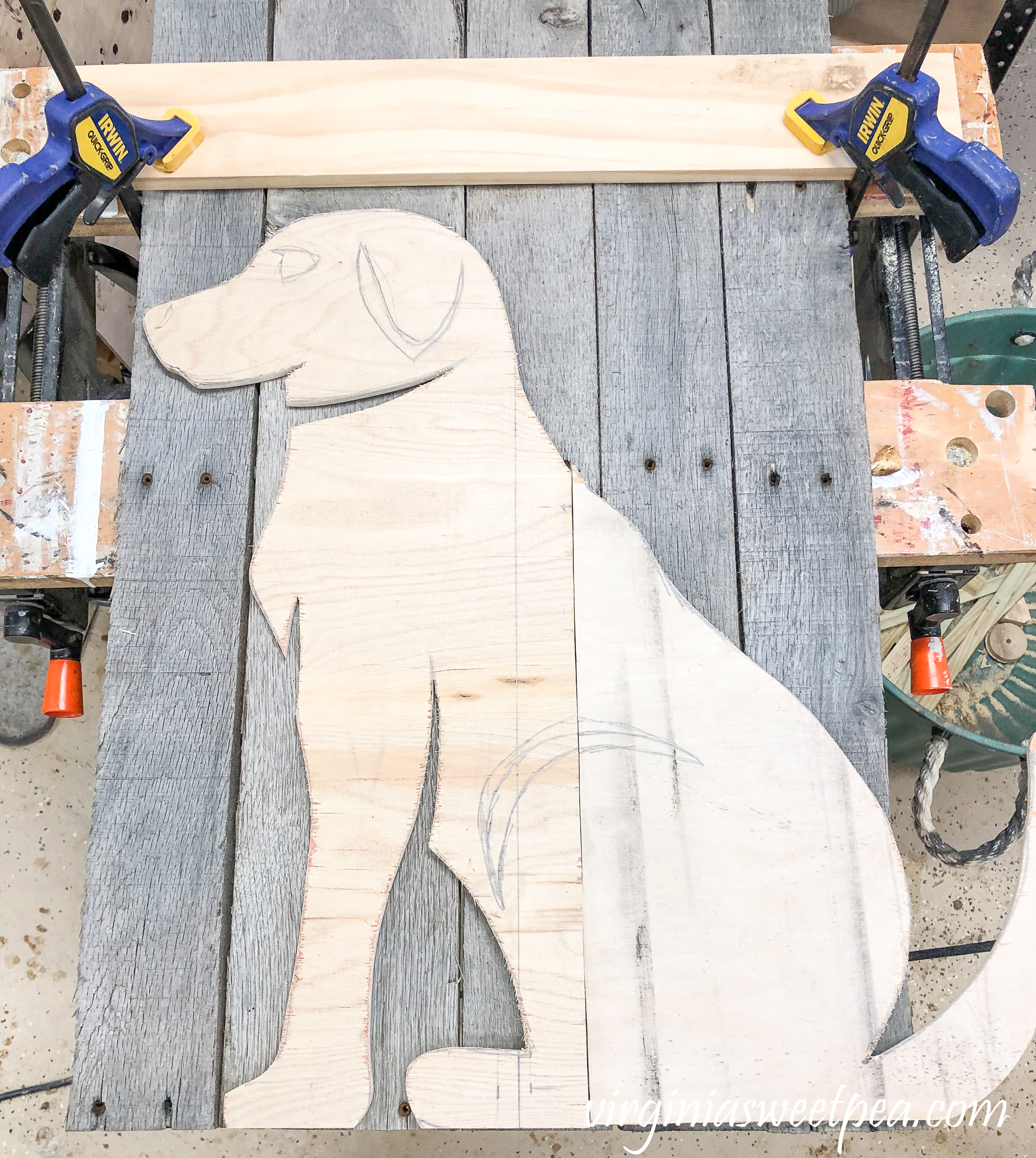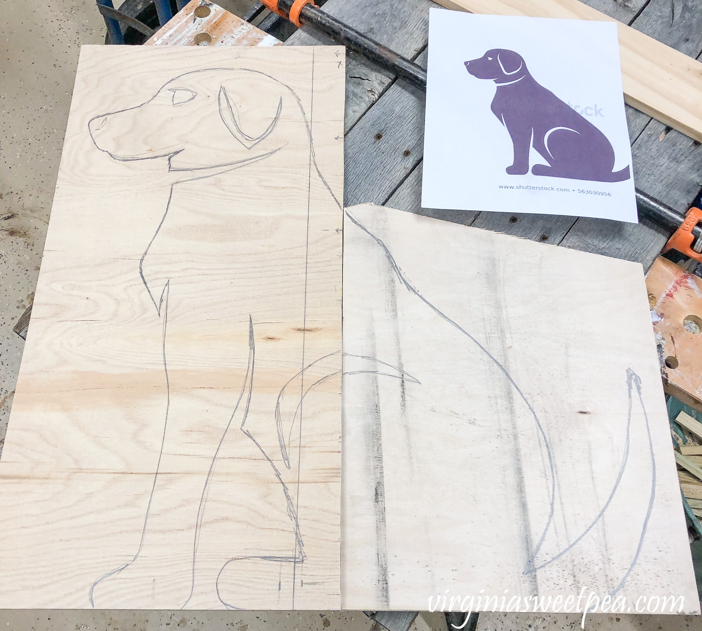 Position dog template on wood. Our dog was wider than the boards, so we cut the tail separately.