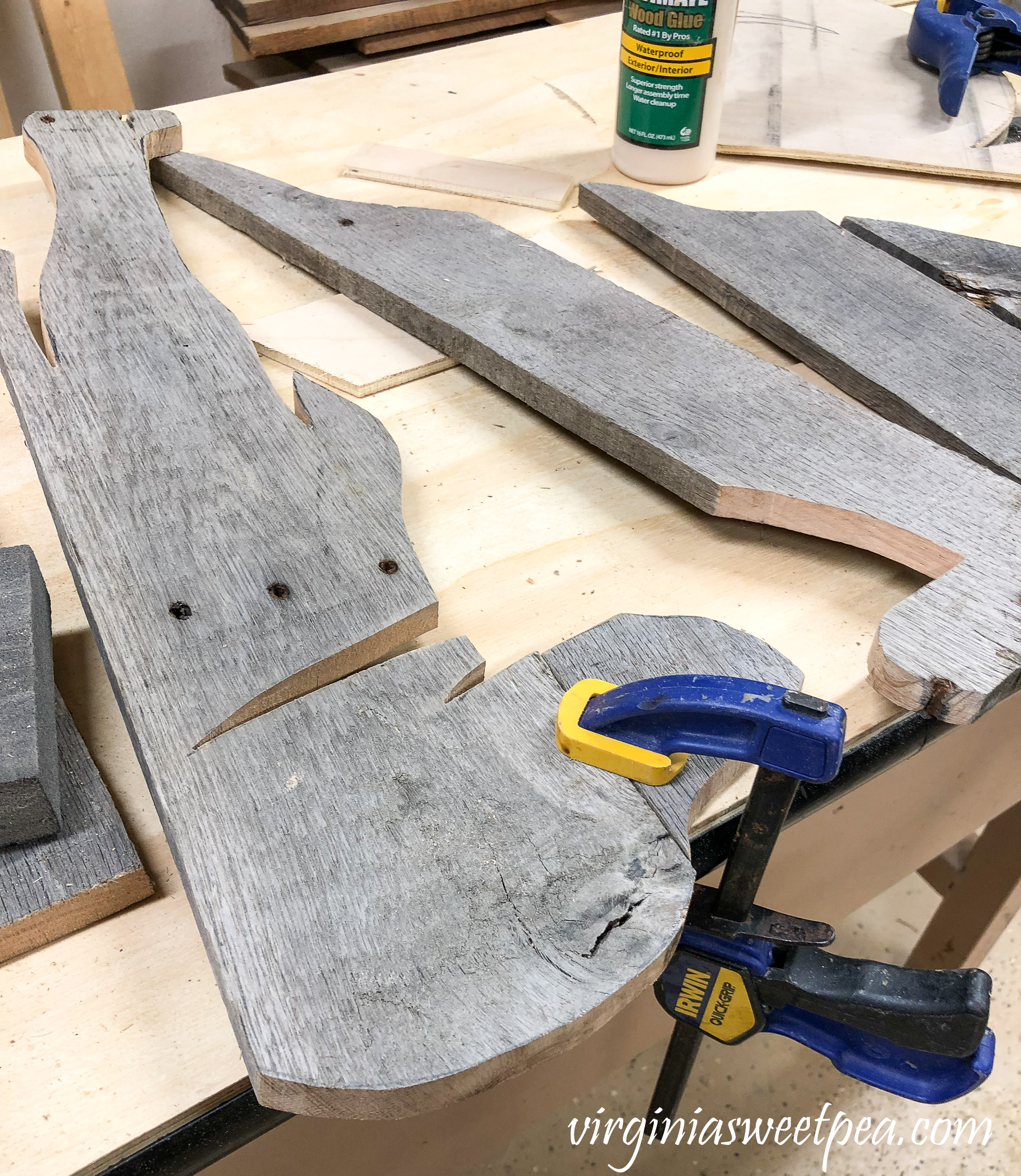 Glue the pieces together one section at a time. Clamp into place until the glue is dry.