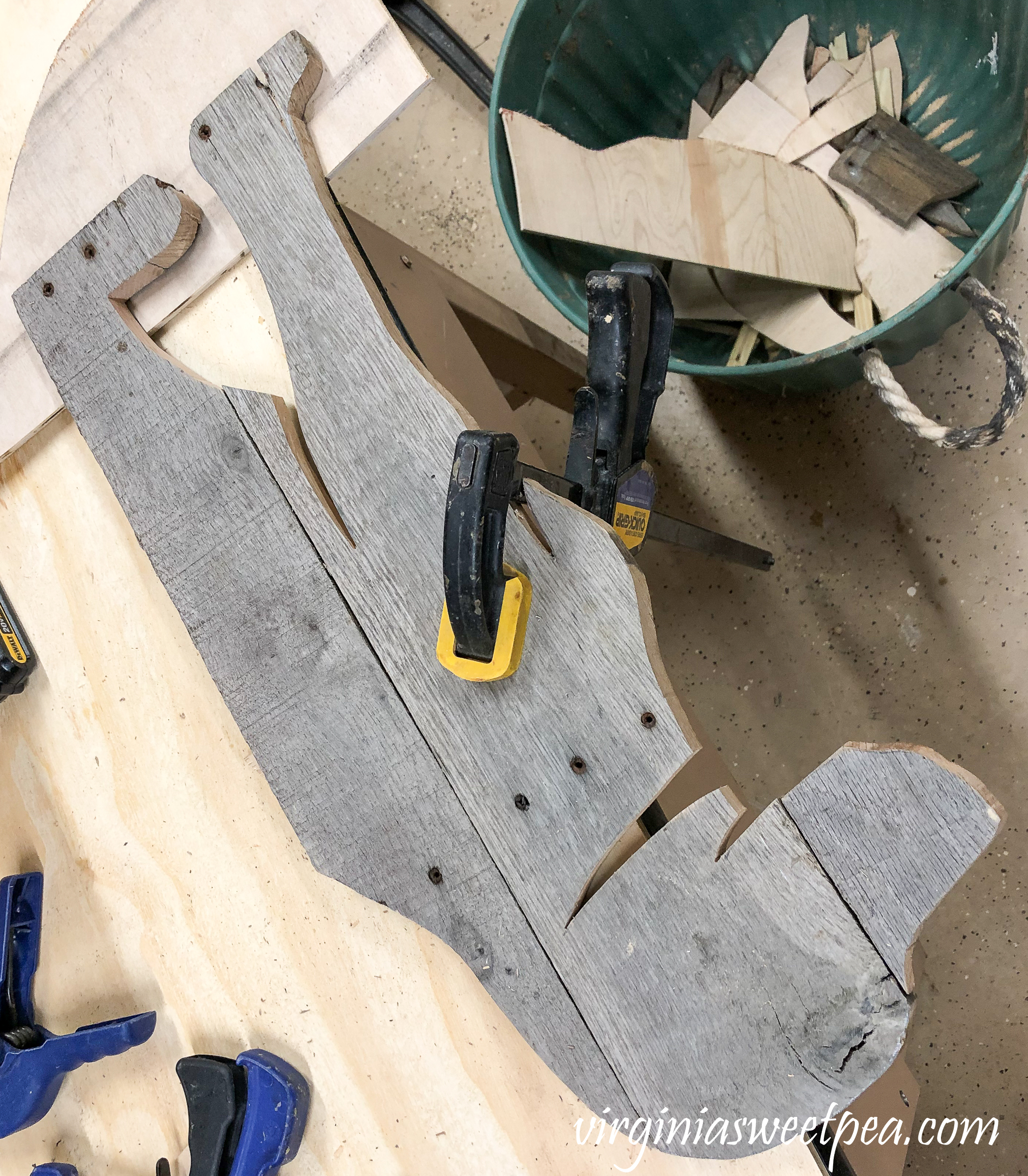 We ended up using the first four boards for this section of the dog and then cut the remaining pieces using two more boards.