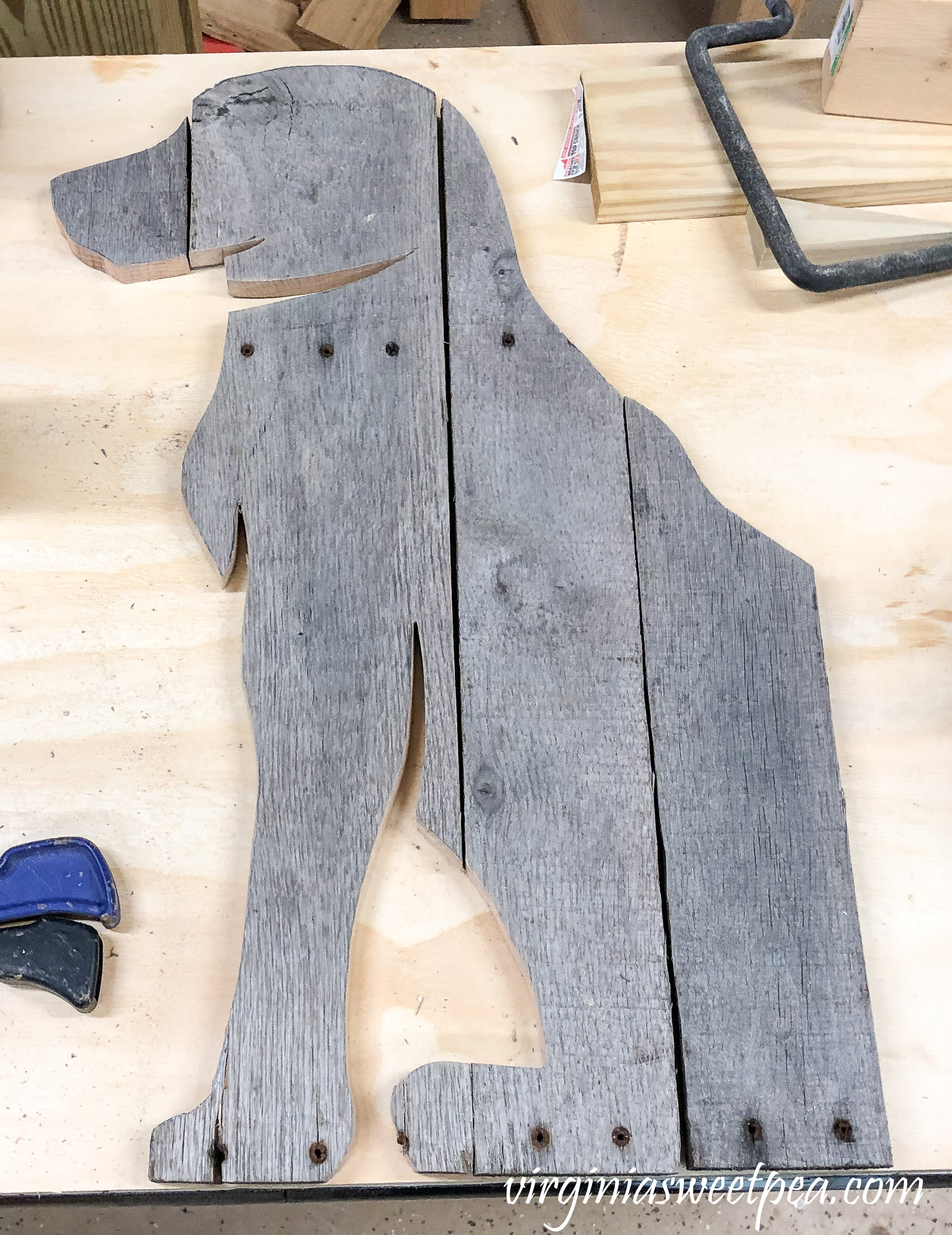 Pallet wood ages nicely and neither my lake house sign nor these dogs required any stain. If you have new pallet wood, you’ll need to stain or paint your finished project.