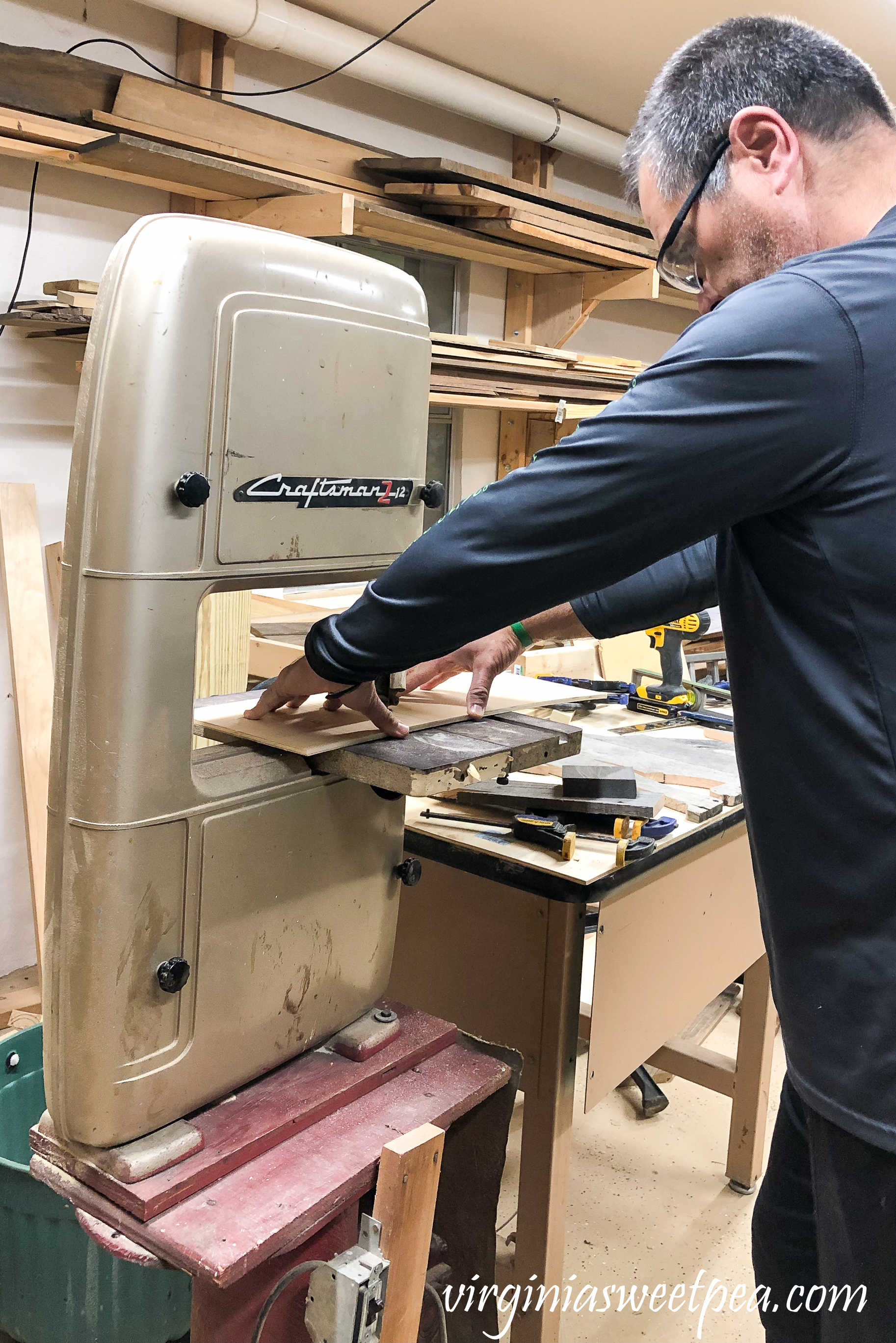 Use either a jigsaw or band saw to cut out the dog pieces. We found that a band saw made smoother cuts. Our regular band saw’s blade broke during this project so we had to switch over to my granddad’s. This baby is ancient but still works perfectly.