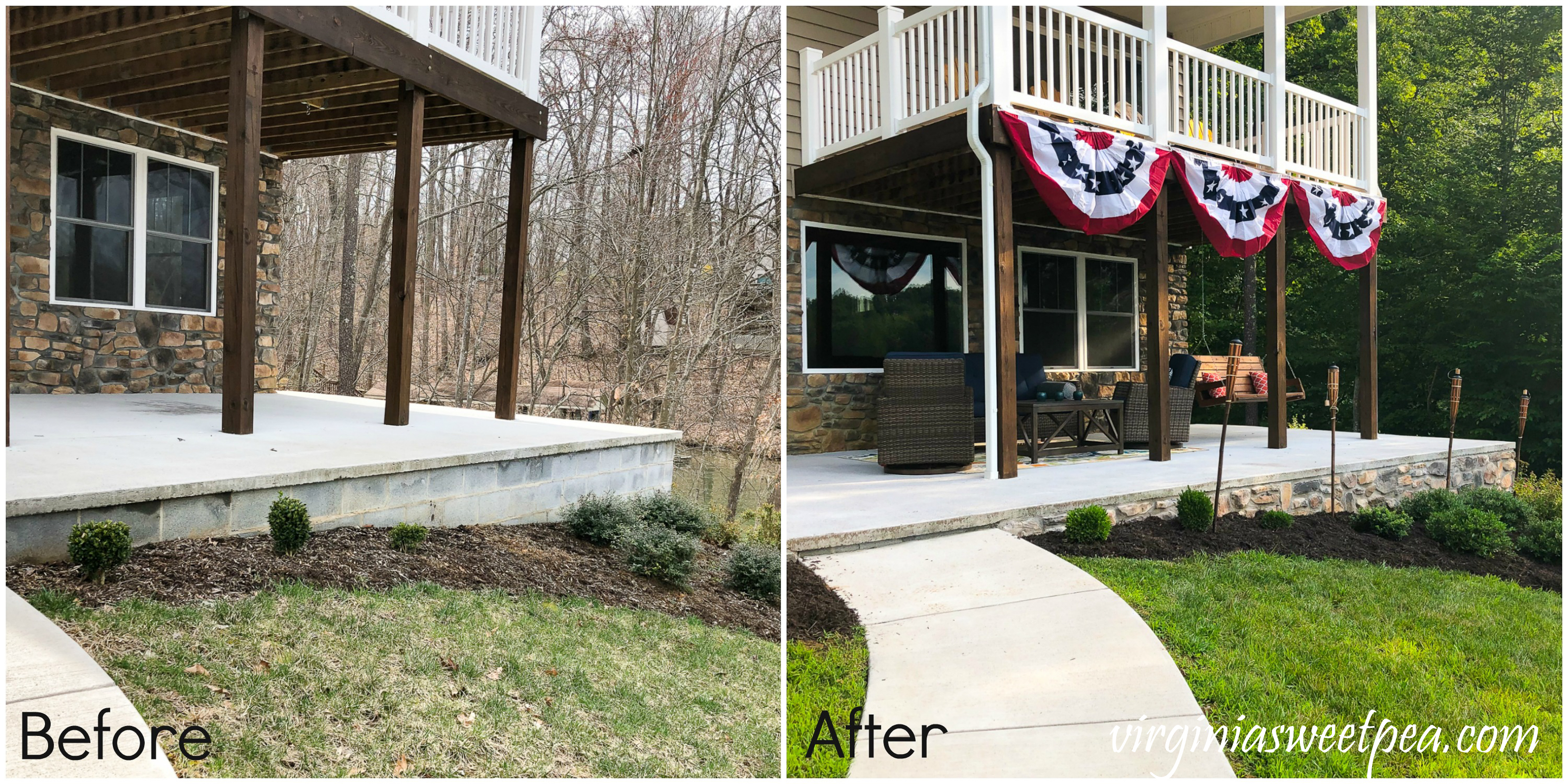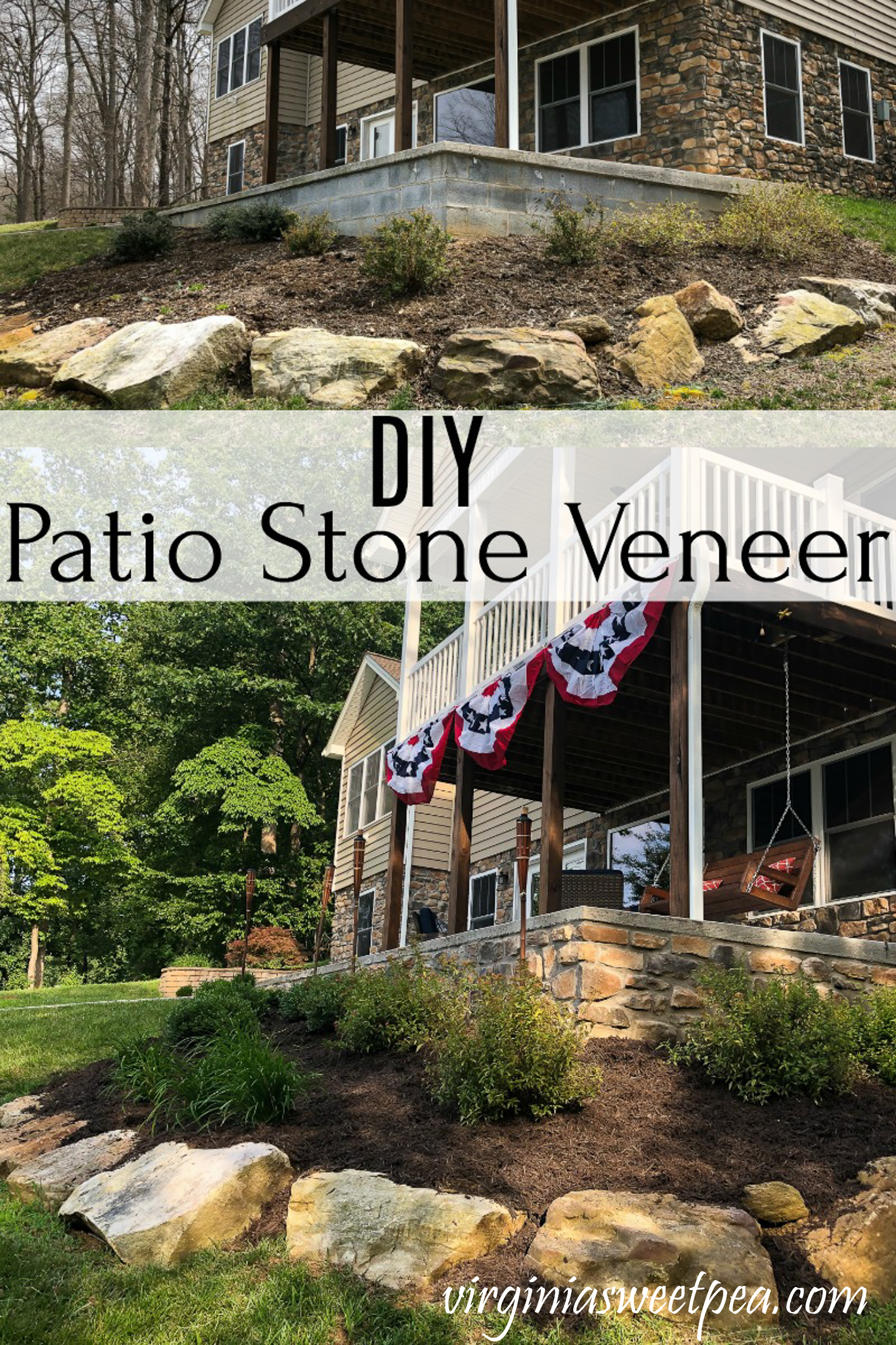 I love a good before and after picture and our porch definitely looks so much better after the stone veneer was added.