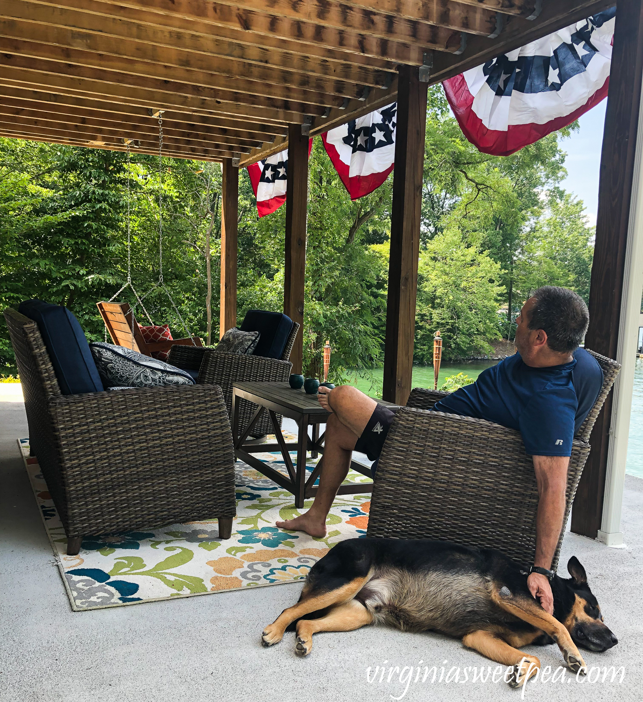 On a typical summer evening you’ll find us relaxing on our patio with Sherman.  Relaxing on the patio at Smith Mountain Lake