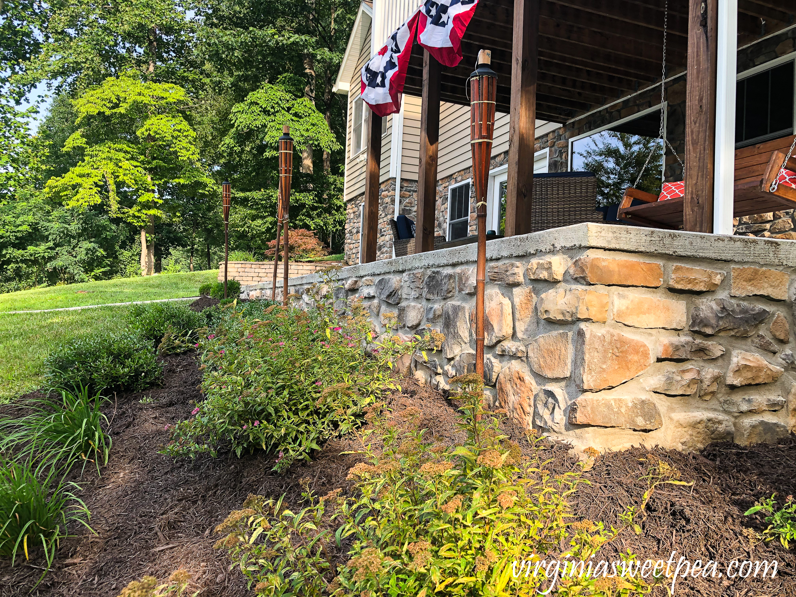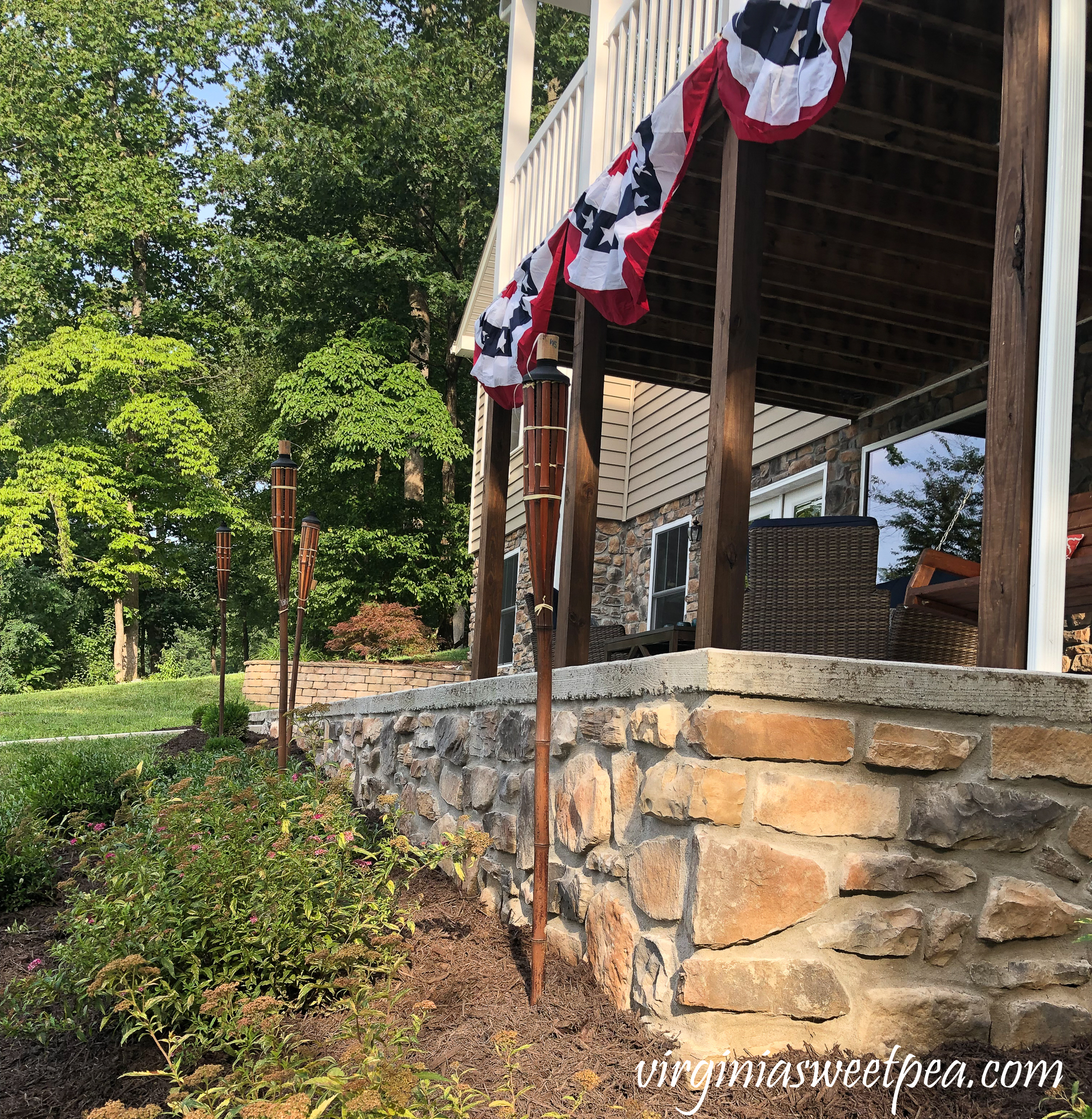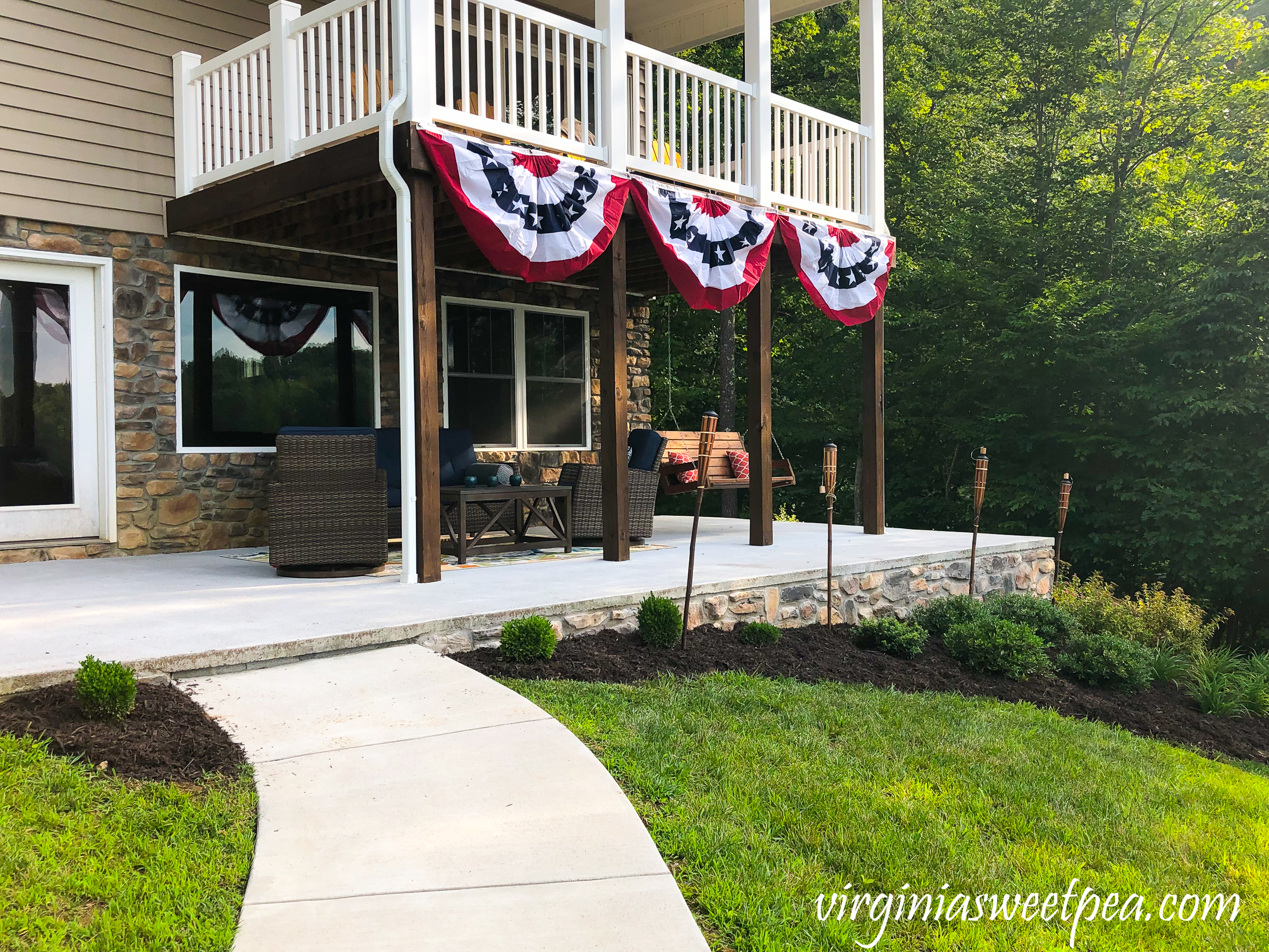 4. Paula, it turned out beautiful. What a wonderful home on the lake. I love the buntings on the railings.It would be hard for me to leave for the week. You can really relax there I am sure. The stone made it look complete. I agree that some times it is better to hire a professional to do certain things. Now just sit back and enjoy how great it looks.