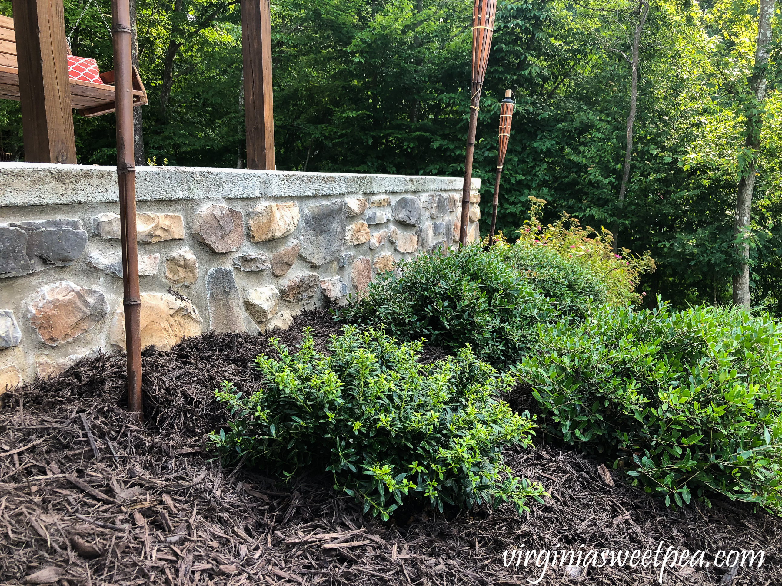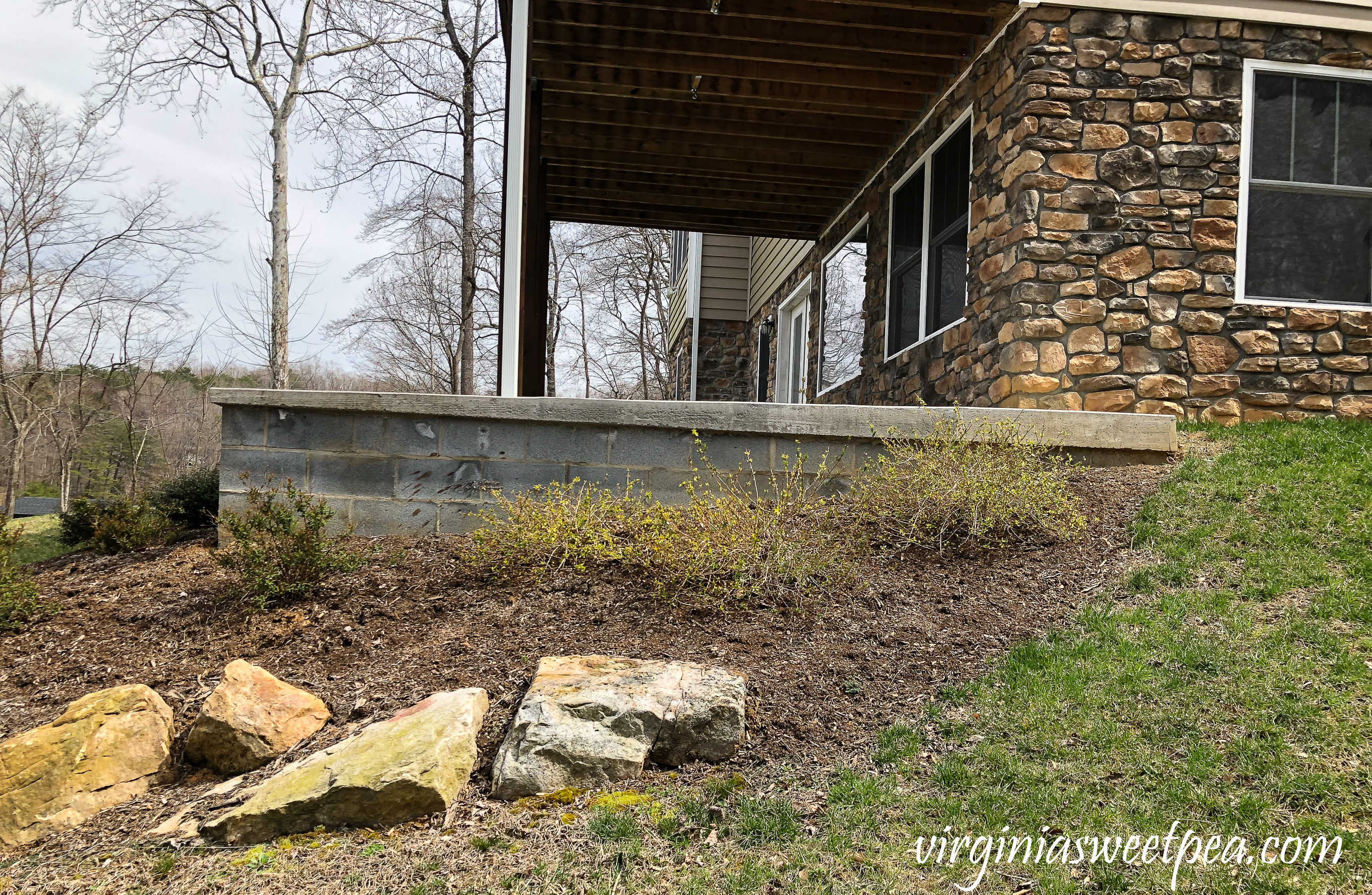 One whole side of our house has only the concrete below the siding, where our basement door is. I would love to put something there to make it look more pretty and finished, like what you did. Except a brick veneer is what would match our front flower beds. Or maybe one day we will add a garage there instead. A garage would be so nice!