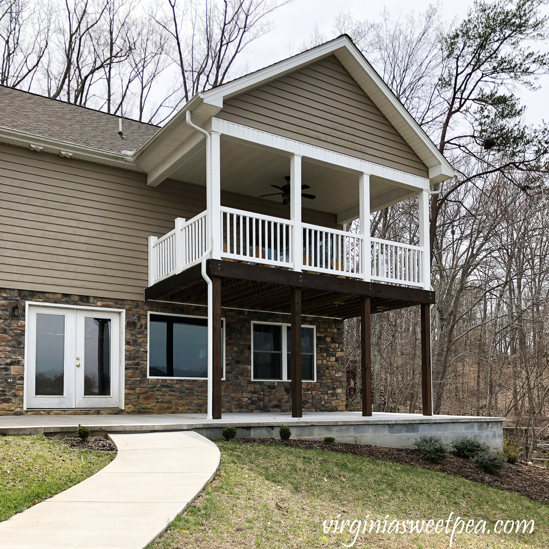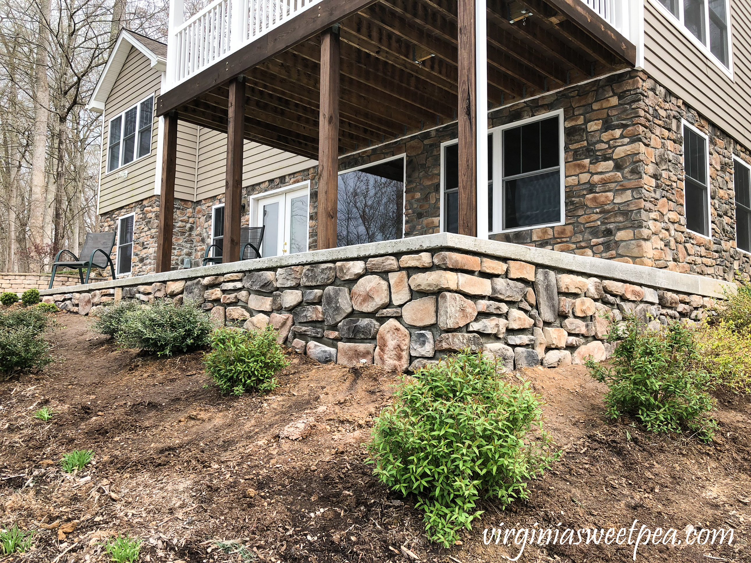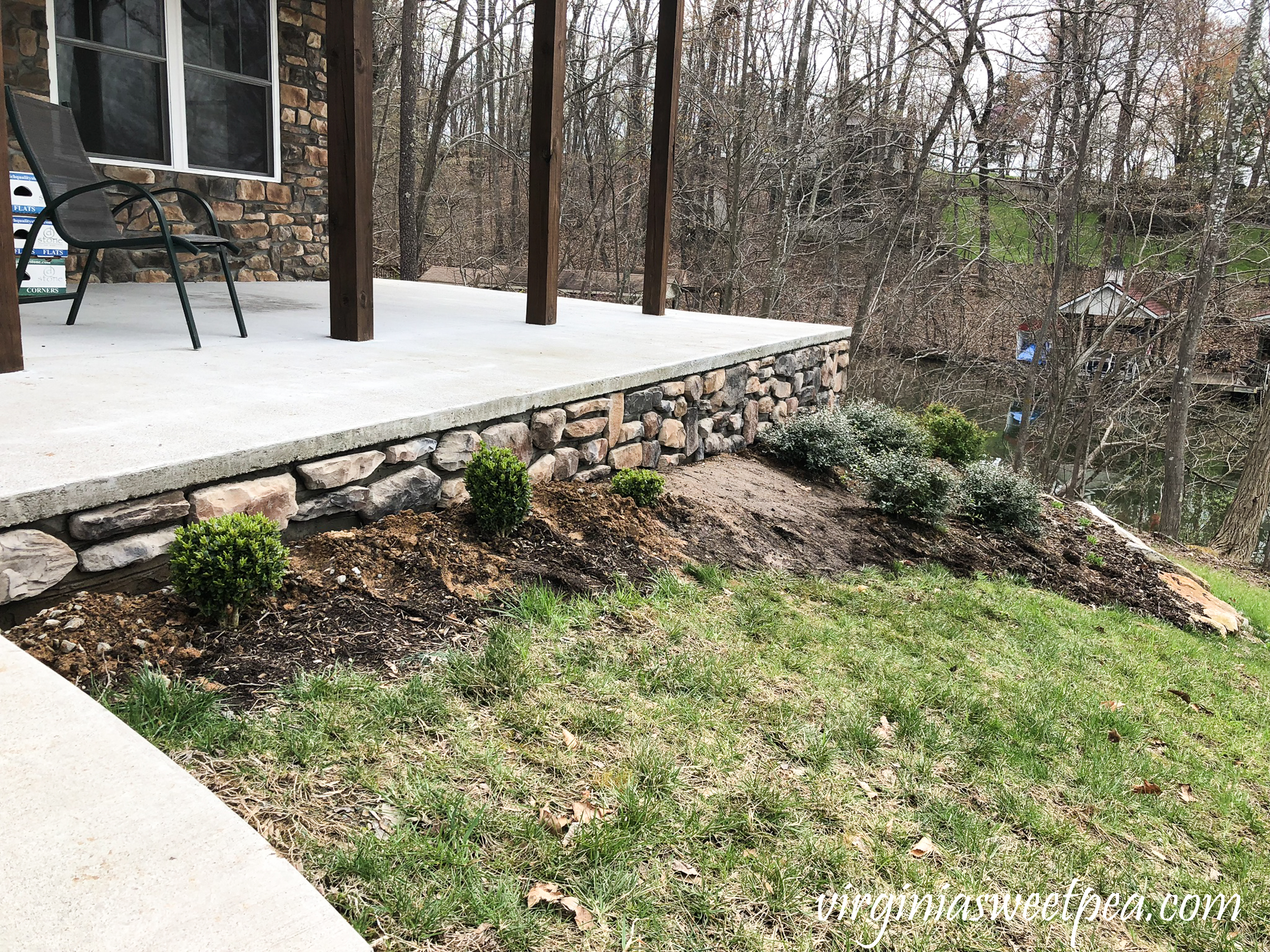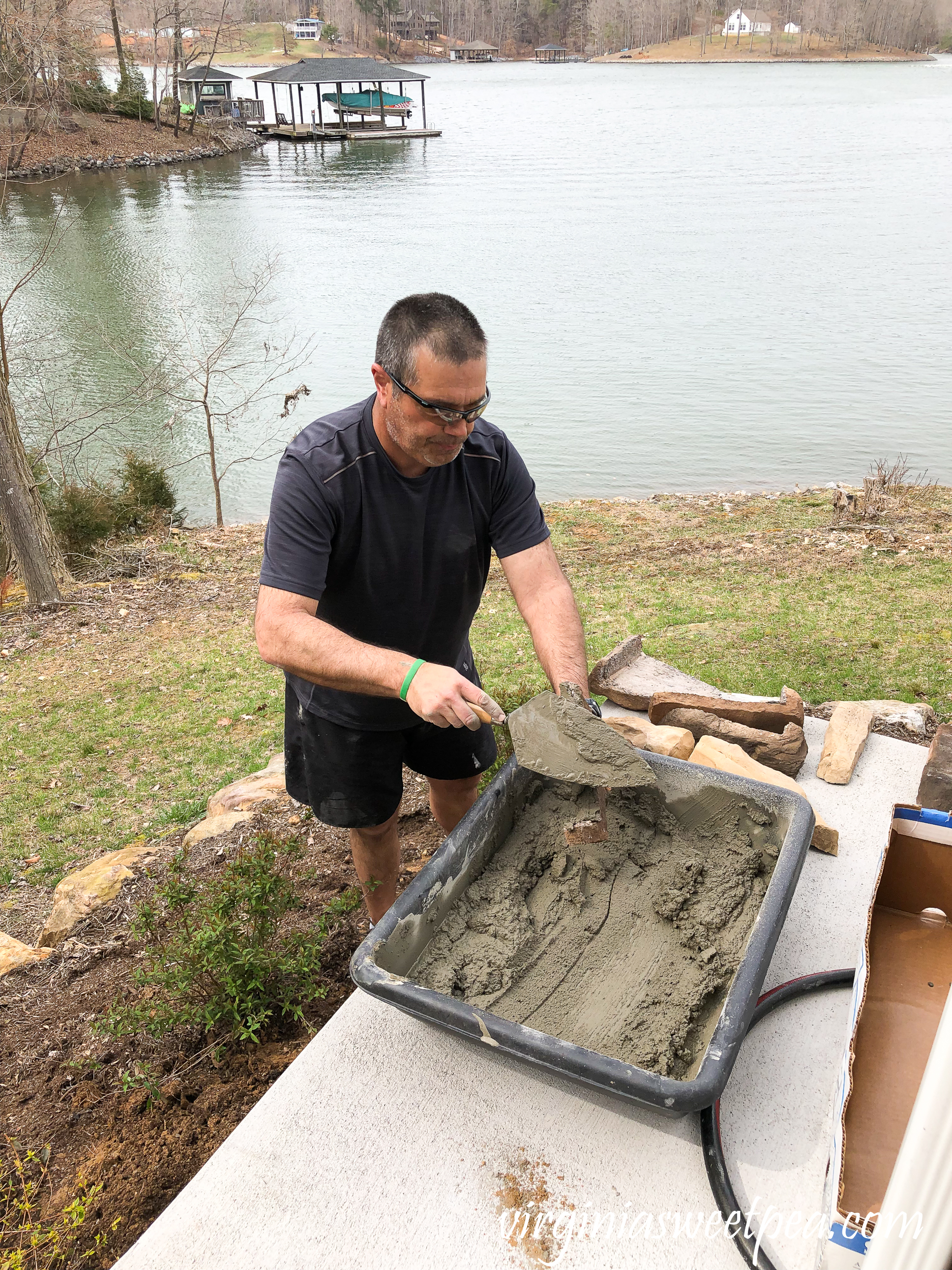 In 2017 we added a patio and walkway to our Smith Mountain Lake house.  When this project was completed in 2017, we did not add stone veneer to the patio to match the house knowing that we could complete the work ourselves at a later date.  Two years later, we finally completed this project and love the end result.