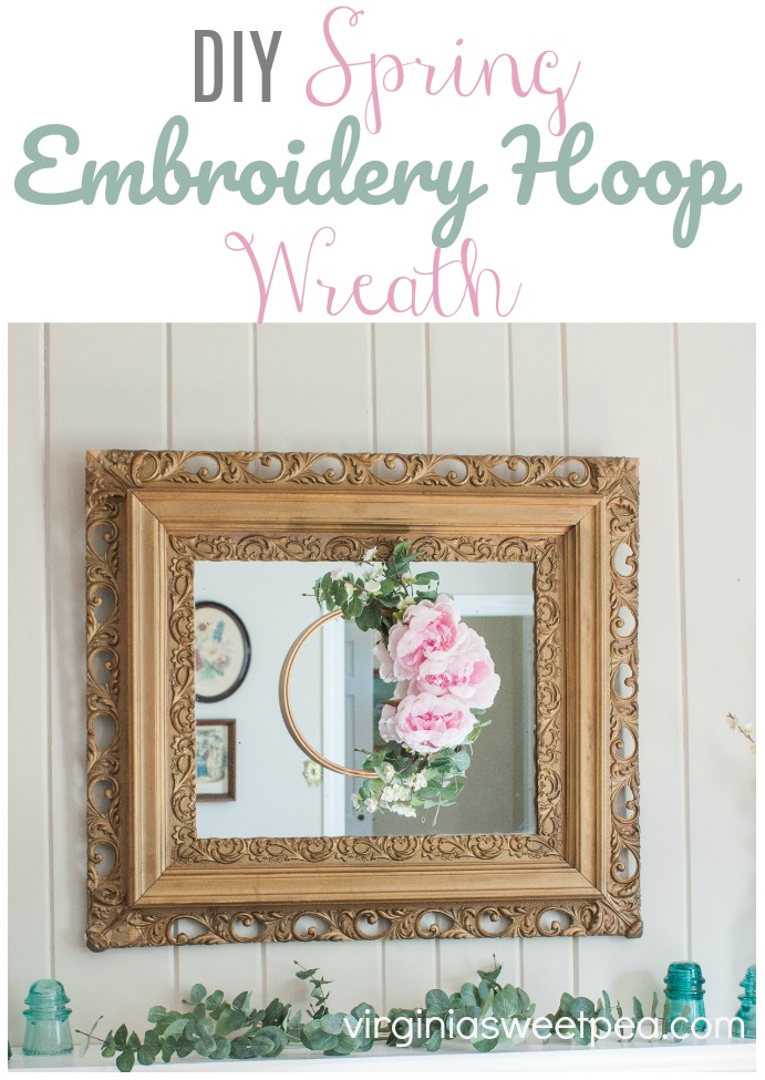 I’ve been busy decorating my home for spring. I wanted a new wreath to hang on the mirror over our fireplace and made a DIY Spring Embroidery Hoop Wreath that I love.