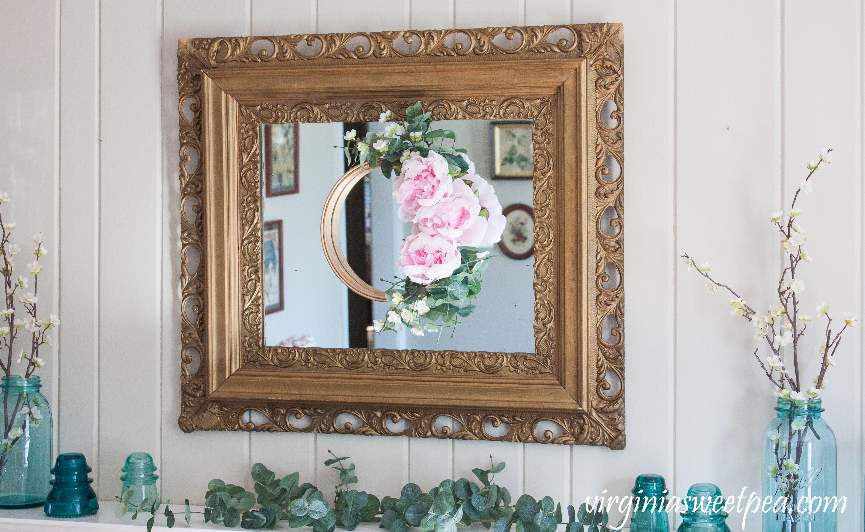 This wreath is so pretty, Paula! it looks like it was made for that mirror. I love the gold tones with the pink. Peonies are one of my very favorites! I recently bought some peony tubers to plant, and they are just about the color of the ones in your wreath. Have you been enjoying the sunshine here in Virginia? I’m still waiting for slightly warmer temps.