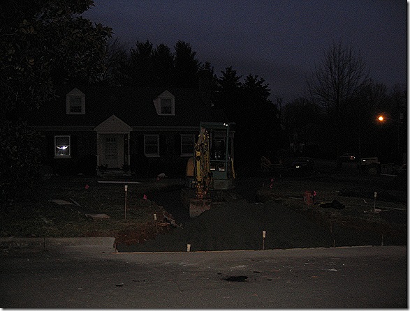 These shots are from Wednesday night. They cut the curb and dug out where the new driveway will go.