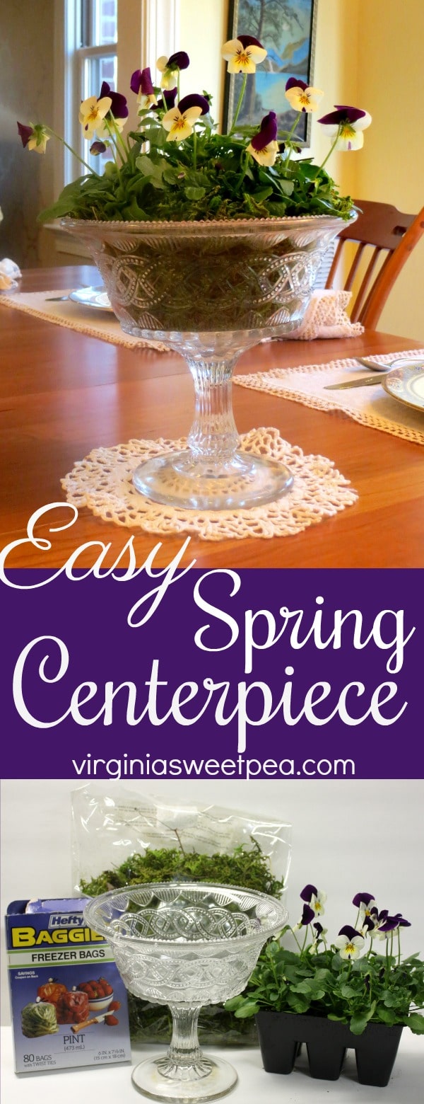 Easy Spring Centerpiece with Violas by virginiasweetpea.com