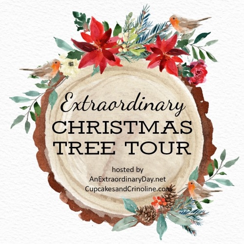 I’m delighted to join Diane of An Extraordinary Day and Mary Beth of Cupcakes and Crinoline for an Extraordinary Christmas Tree Blog Hop.  We are sharing our Christmas trees and also some of the handmade ornaments that we’ve used to decorate them.  All of the ladies participating shared a handmade ornament that they made for October’s 31 Days of Handmade Christmas Ornaments Blog Hop.  Today we are sharing our trees and also some of the handmade ornaments that we’ve used to decorate them.