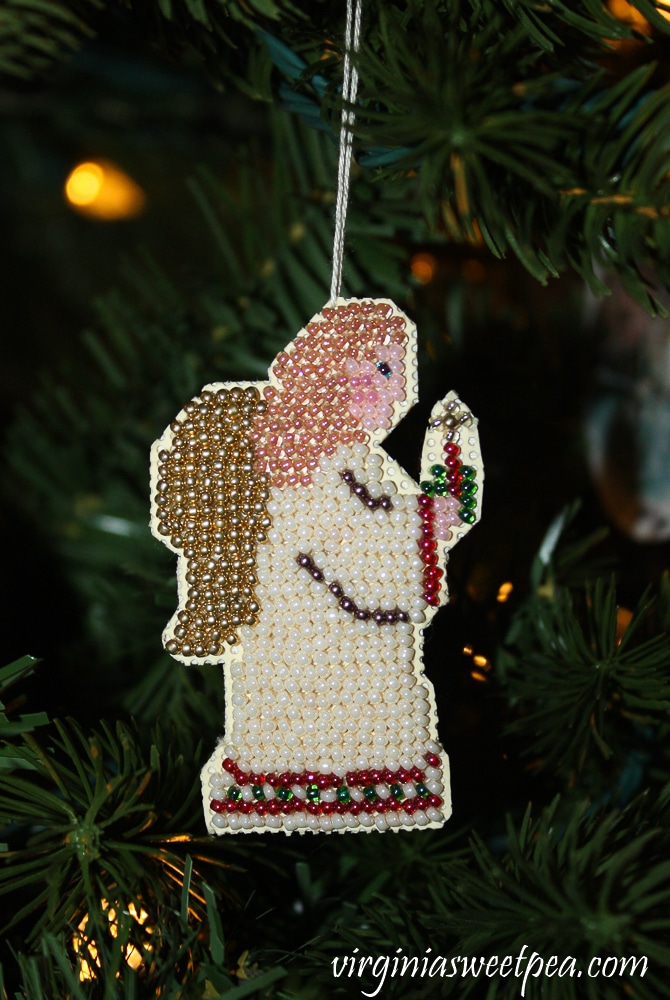 I used to love to cross stitch and one year made several beaded cross stitch ornaments for our tree.  This angel is a favorite.  I doubt if I could see well enough now-a-days to craft this!