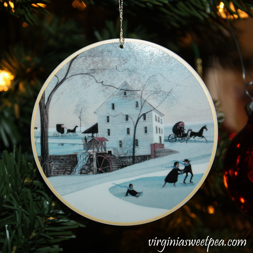 My mother gives me a P. Buckley Moss ornament each year for Christmas.  Patt Moss is a talented artist and has been popular in Virginia for many years.  She is a Shenandoah Valley artist and her work depicts scenery found in the valley and often includes Mennonites.
