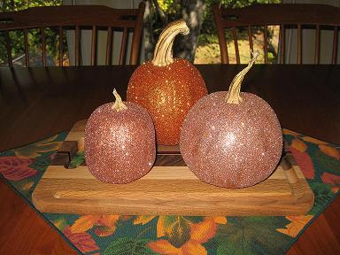 Making glitter pumpkins is one of my annual craft projects. The glitter colors in the front are a little too similar this year, but oh well. I love how they sparkle at night!