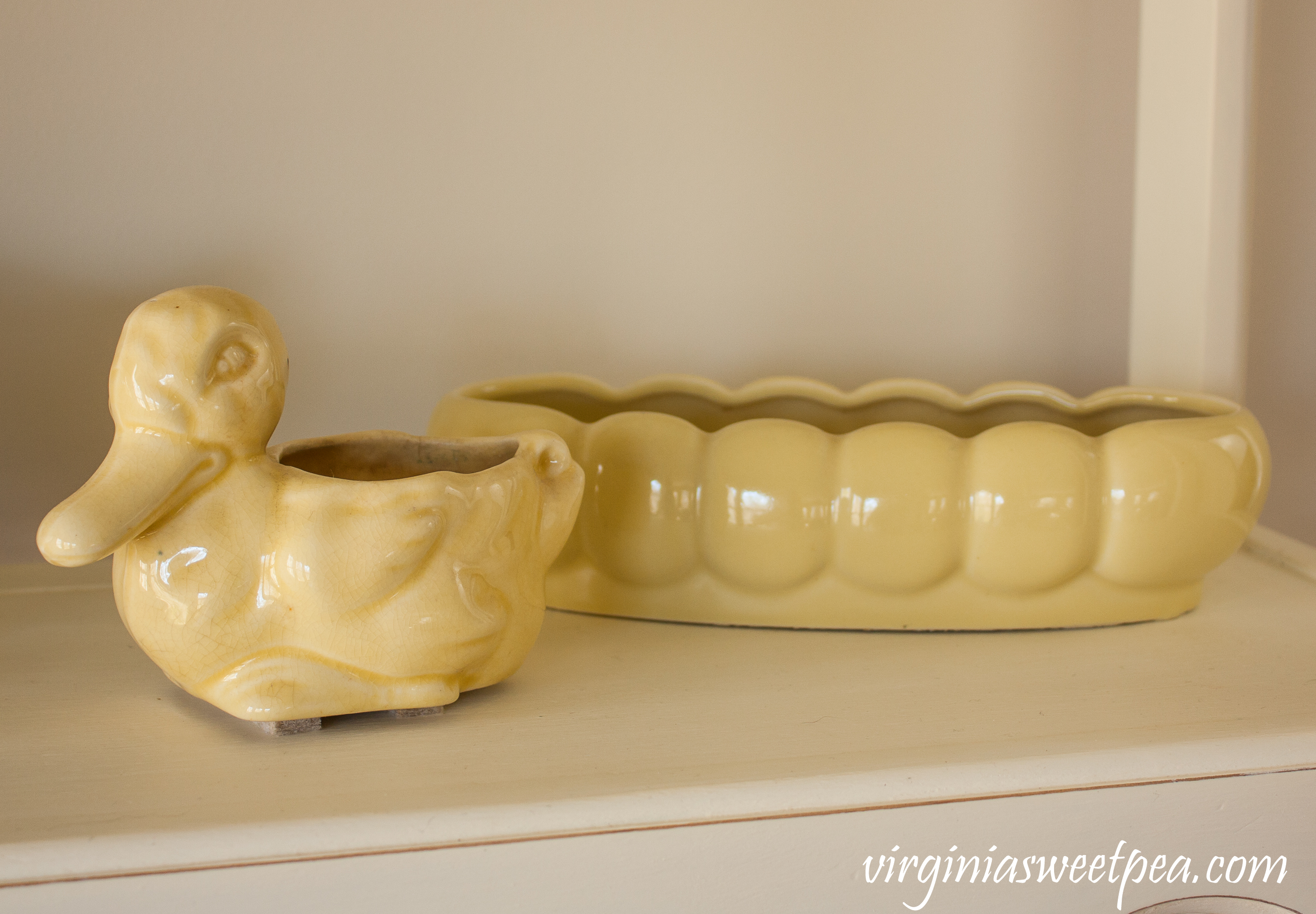 I wonder if the duck was used for flower arrangements welcoming a new baby. I love your pottery collections. One of the ideas I found on Pinterest -and have yet to complete- is a collection of same-color planters for a coffee station. https://www.pinterest.com/pin/192106740326148283/