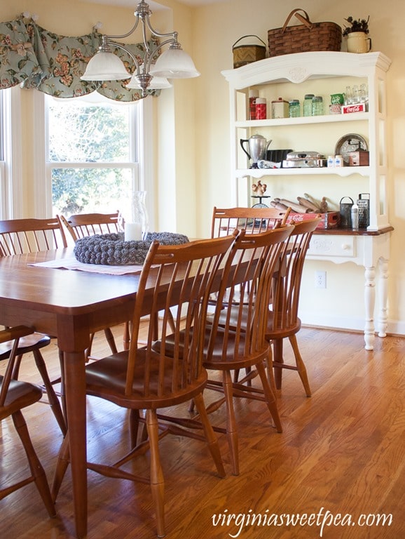 The fresh new paint really brightens your breakfast room! And that hutch is so gorgeous! I love that it has open shelving –so unique! Your pottery and dishes are lovely. I collect ironstone and some of my pieces are not true ironstone but close enough for me! I say if you love the piece then buy it even without the markings 🙂 You have a beautiful collection! Thanks for sharing!