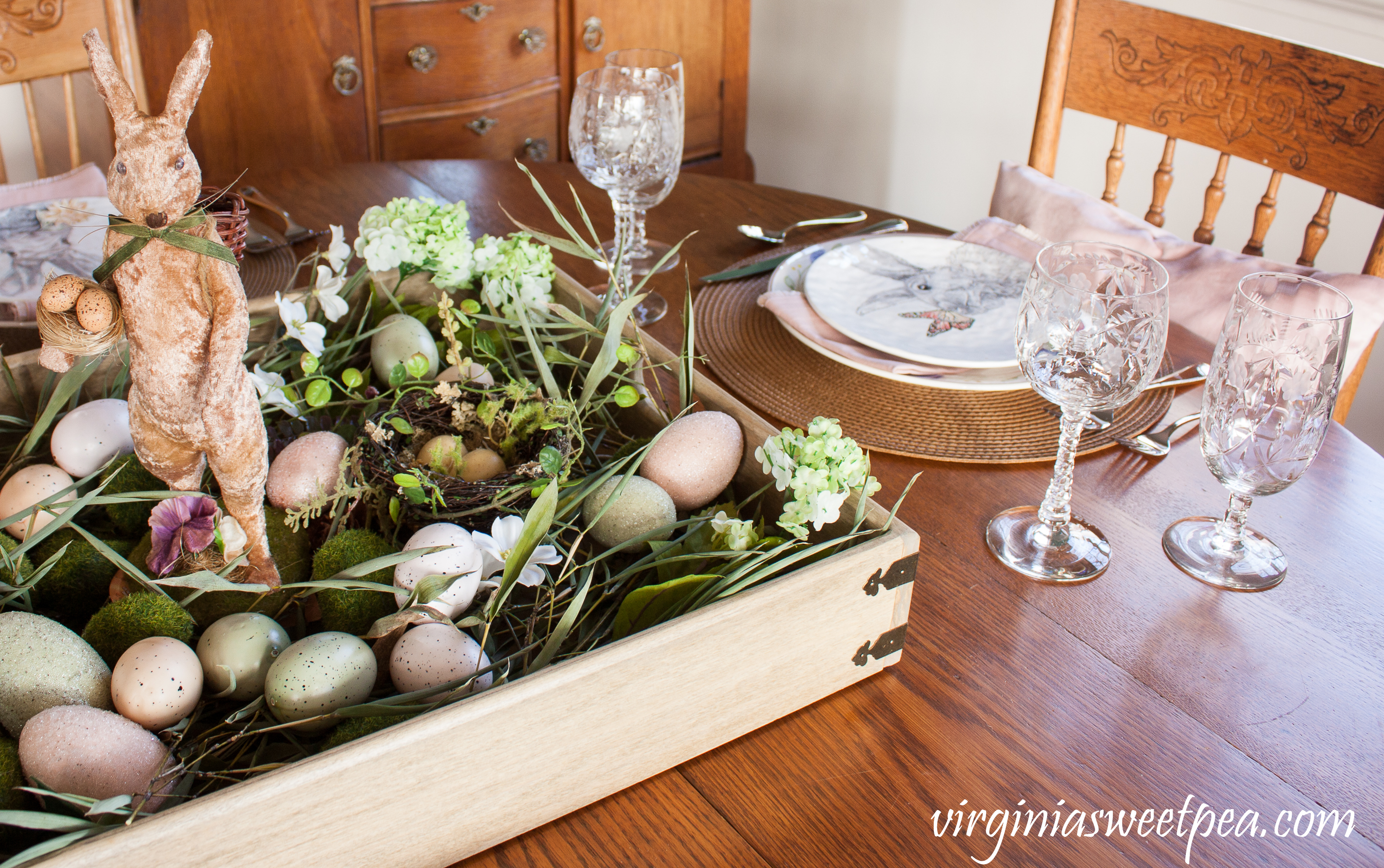 6. I’m with your BFF Cousin – it’s hard to stop staring at it! The fantastic bunny, the plates, the centerpiece and hello, the wall color! You’ve got the perfect dining room for Spring and Easter! I love it all. Thank you so much for joining in today.