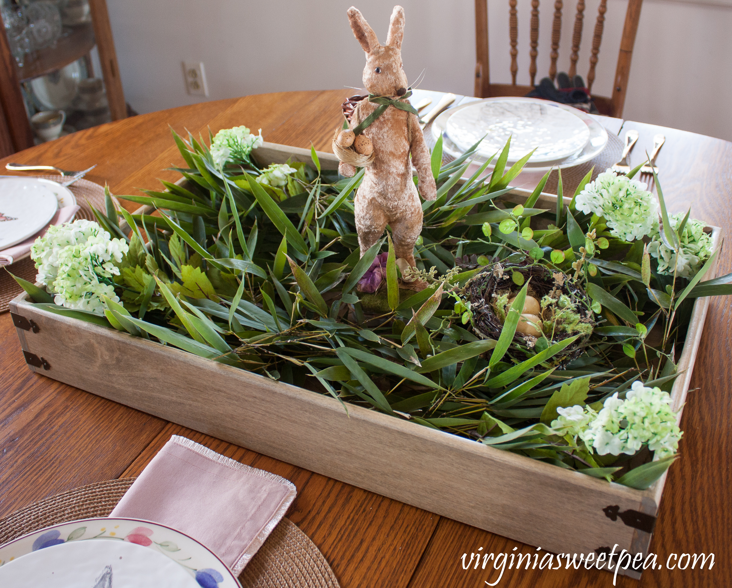 1. That bunny is adorable. He has such a cute look. I love that you used the bamboo. We fought it when we lived in Lubbock, Tx. It was a never ending battle. This is such a beautiful table.