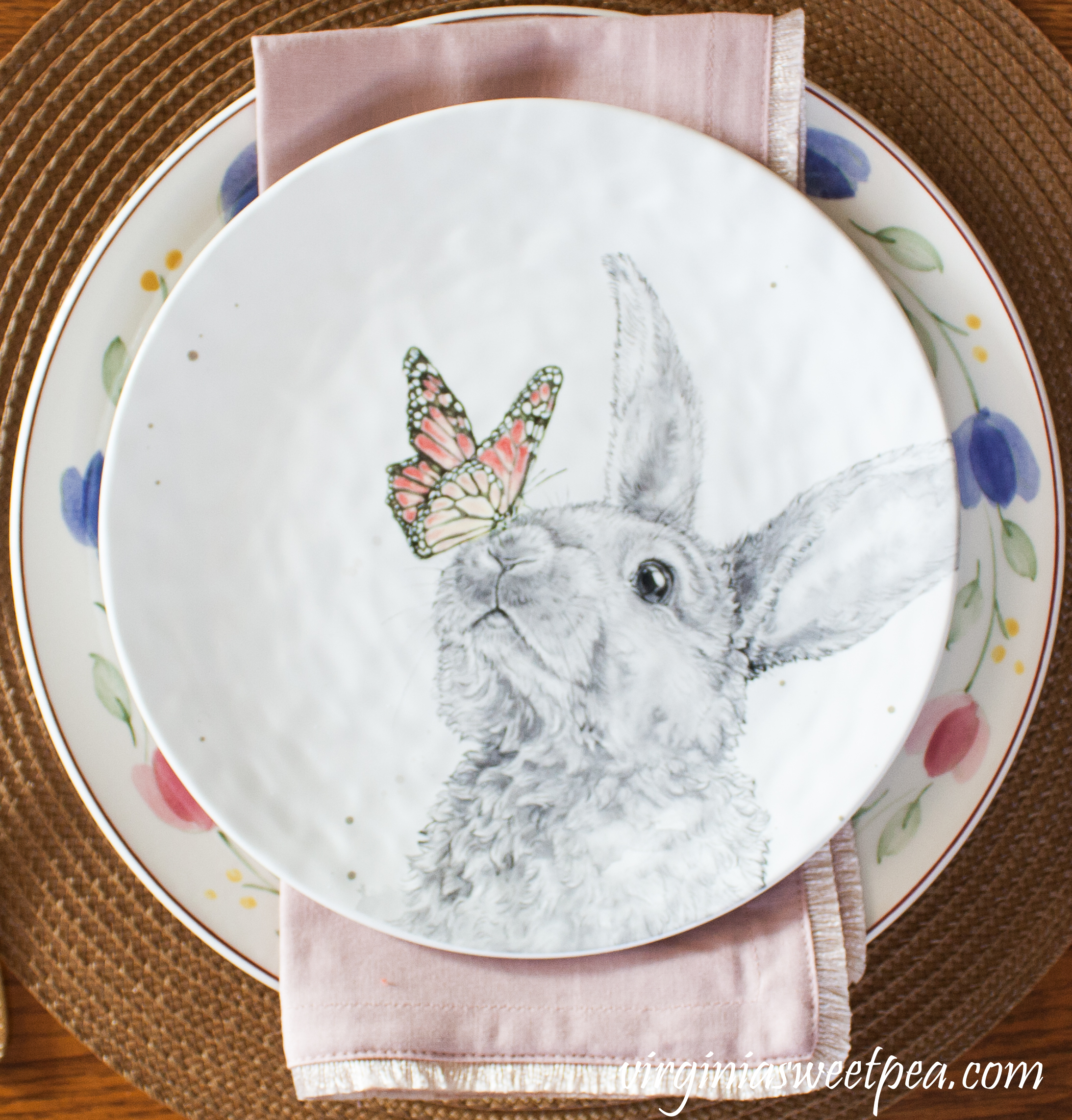 2. Your centerpiece is so pretty! I love your bunny, especially love that basket he’s carrying…too cute!! Your plates are adorable! Hugs!