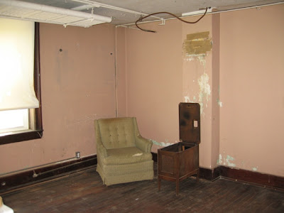 The people who moved Frances left two terrible couches behind. Now Mama has the joy of trying to get rid of them. Moving out the furniture really shows off the flaws in a room. I can see why realtors like to show houses with furniture.