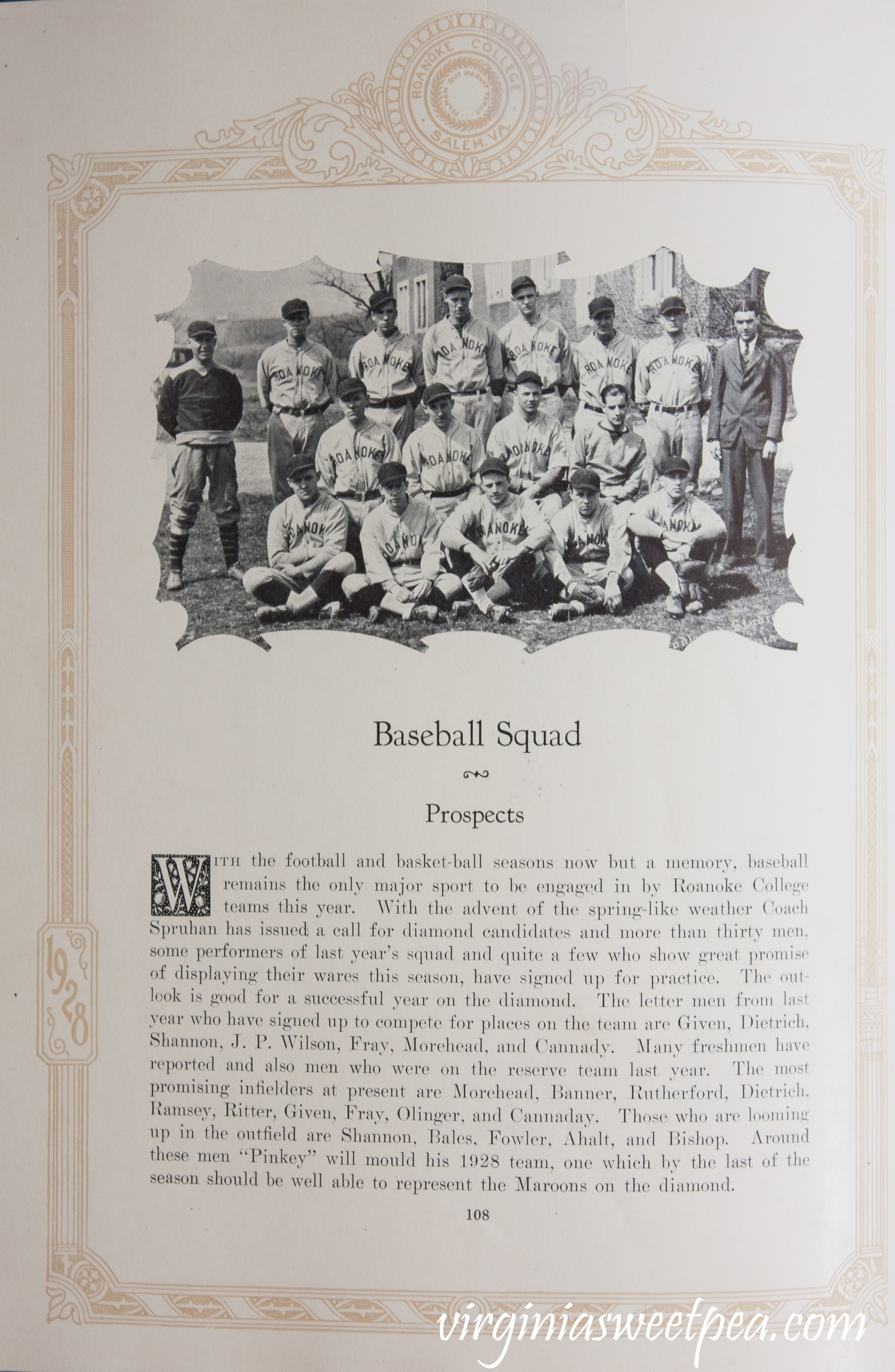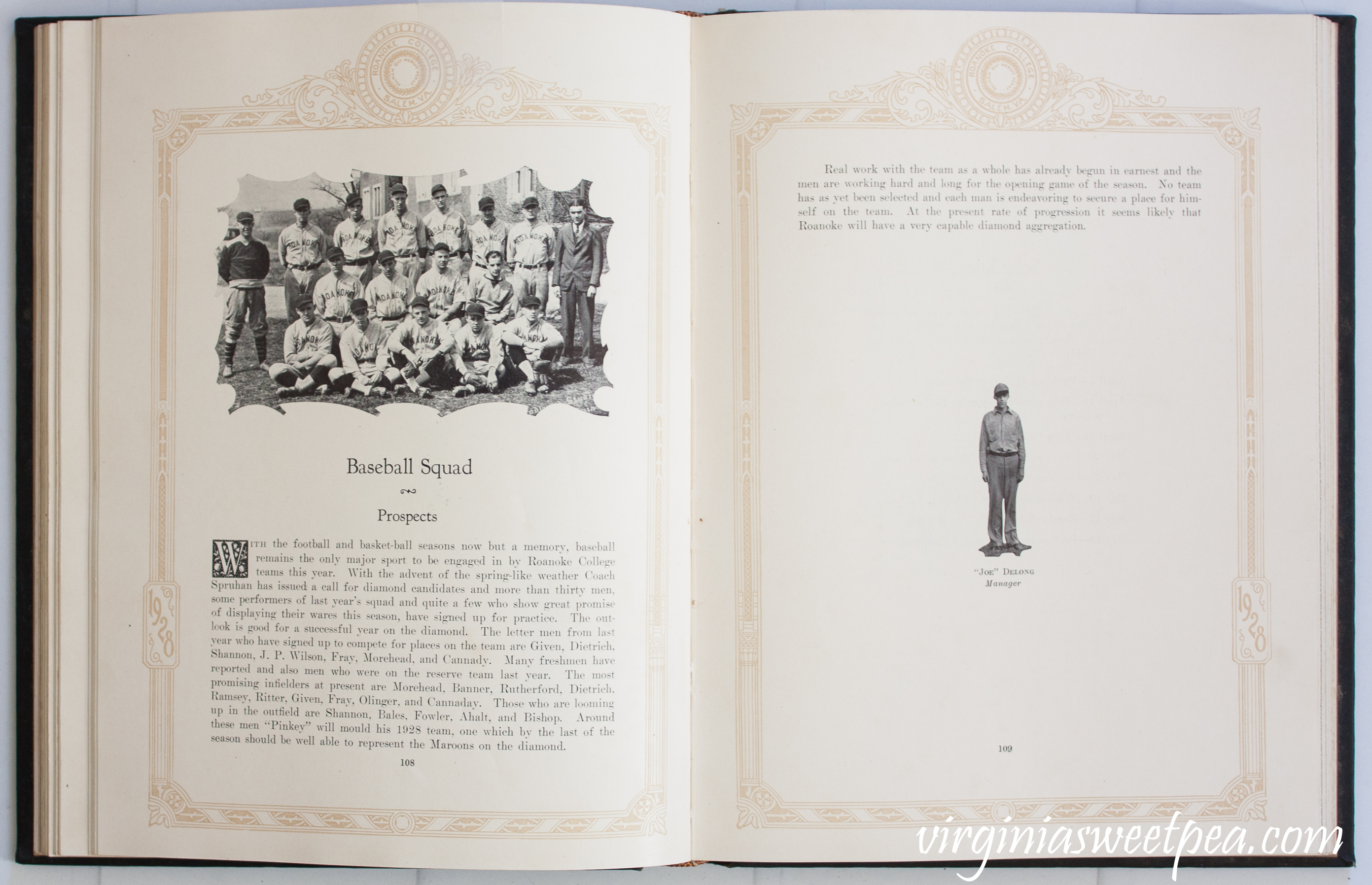 I wondered if my grandfather played baseball in high school or college and found one answer in my attic thanks to one of his college yearbooks. This is my grandfather’s 1928 “Rawenoch” yearbook from his sophomore year of college.