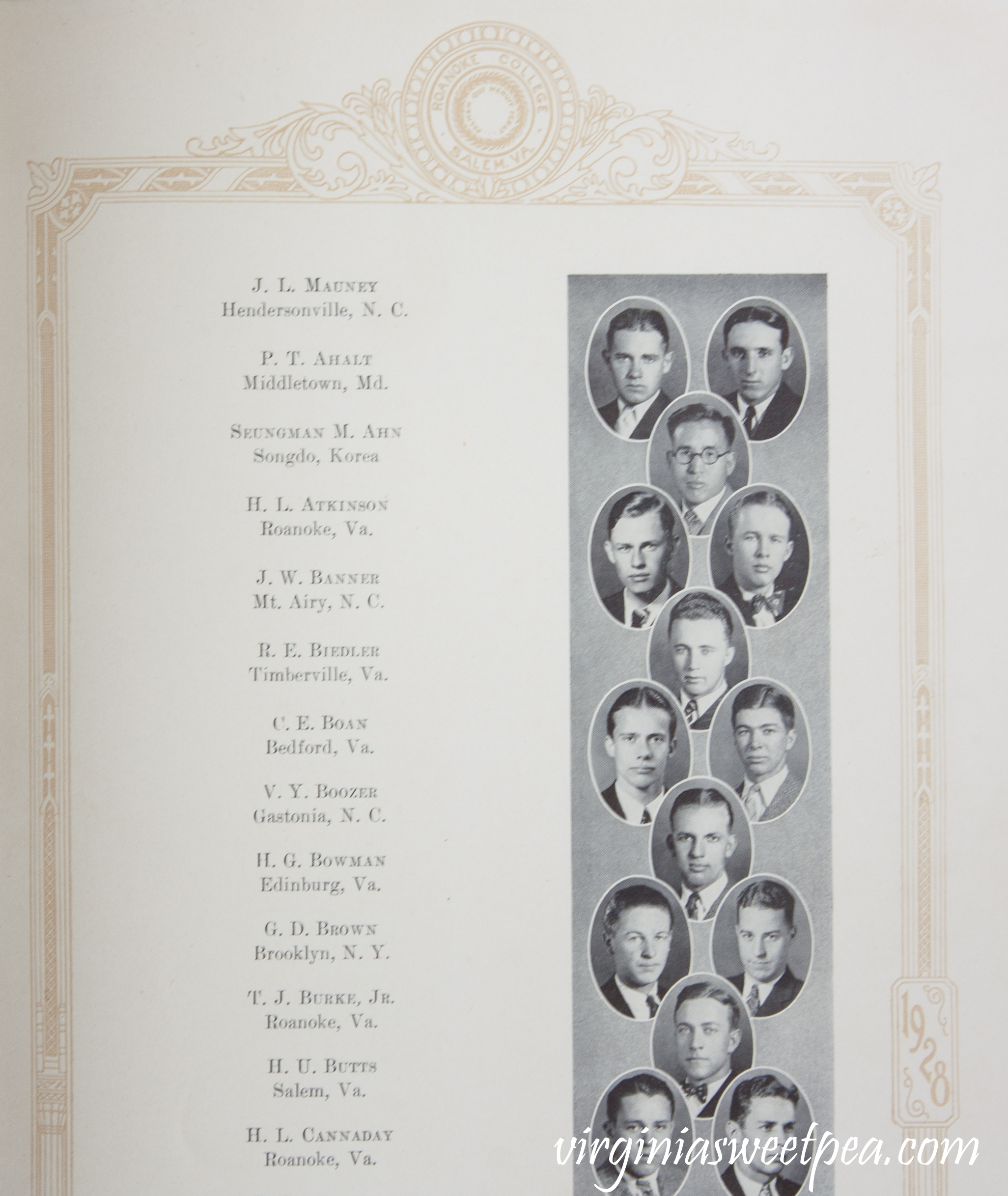 Here is granddaddy with the sophomores, incorrectly listed as P. T Ahalt of Middletown, MD. He’s actually Paul Edwin Ahalt. Until I got married, we had the same initials, PEA. My PEA stood for Paula Elizabeth Ahalt. My dad was Paul and I was named after him. My blog is called Sweet Pea because of my initials being PEA for so long and because I like to garden.