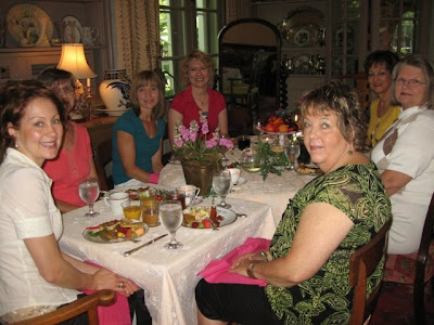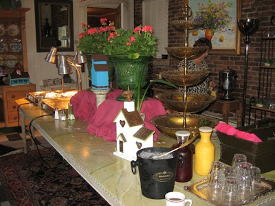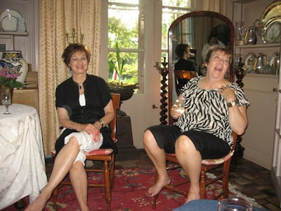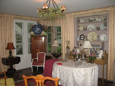 Here we are at breakfast on Saturday. After fueling up, we hit antique shops, thrift shops, and antique sales. We shopped until we dropped! Post shopping we took a break before dinner for some wine and socializing! Here is Donna and Debbie sharing a laugh in the parlor.